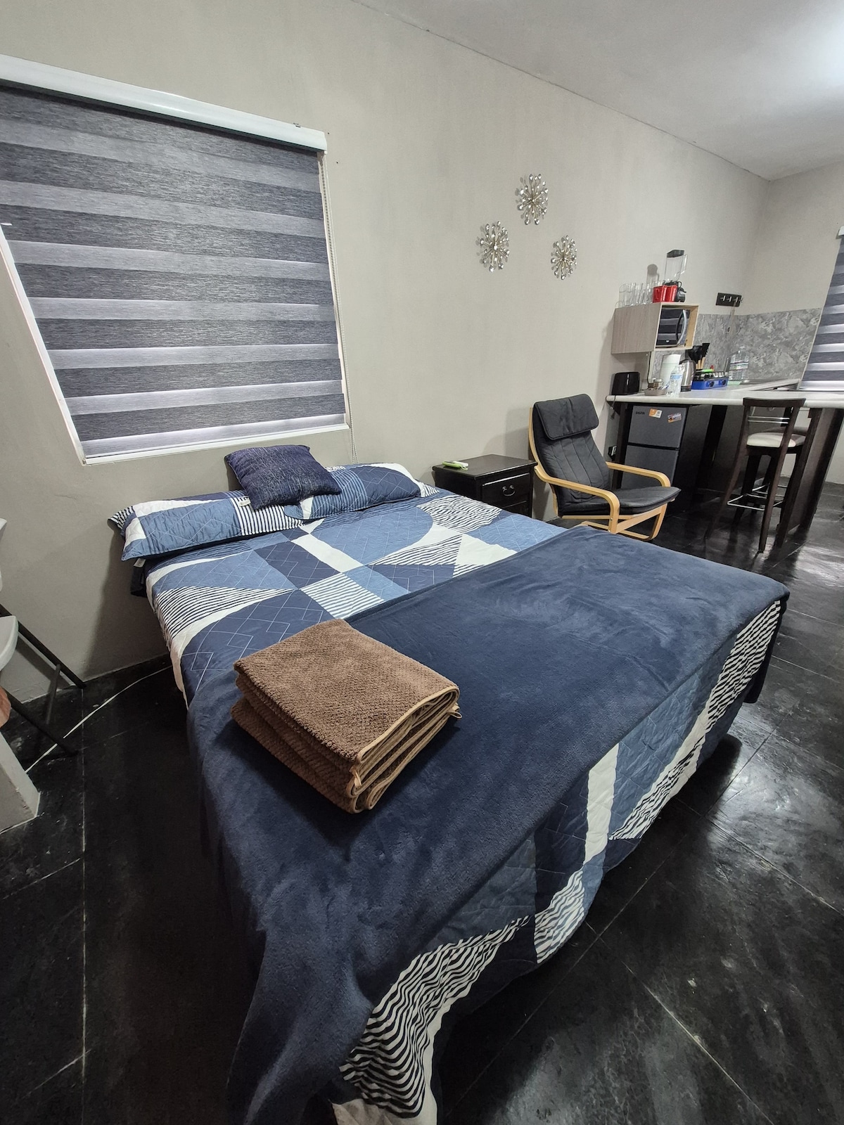 Újonnan felújított hangulatos lakás Monterrey egyik legszebb környékén, a Calzada del Valle és a fő bevásárlóközpontok közelében. Csendes hálószoba íróasztallal, minibárral és mikrohullámú sütővel. Élvezd a kertet grillezéssel. Wifi és saját bejárat. Az egyetlen közös helyiség a lakosztályod külső folyosója, amely biztosítja a privát szférát. Vedd figyelembe, hogy nincs privát parkoló, de nyilvános parkoló áll rendelkezésre egy közeli parkban. Azért vagyunk itt, hogy emlékezetes élményben legyen részed a városunkban. Üdvözlünk!