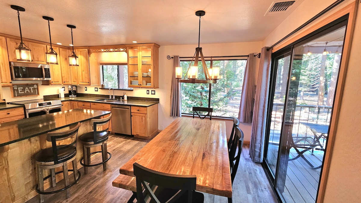 Üdvözlünk a Tahoe-tónál, amely a világ legszebb helye! Nagyon örülnénk, ha vendégül láthatnánk a Zephyr Cove-i Pinewild Waterfront Community területén található családi kiruccanásunkban. Lazíts a privát strandunkon vagy a társasház egyik teraszán, és élvezd a környezeted nyugalmát. Az otthonunk Tahoe egész éves tevékenységeinek központjában található! Bár az éttermek, üzletek, síközpontok, elsőrangú golfpályák és éjszakai élet mindössze 5 perces autóútra találhatók, az otthonunk békés és félreeső.