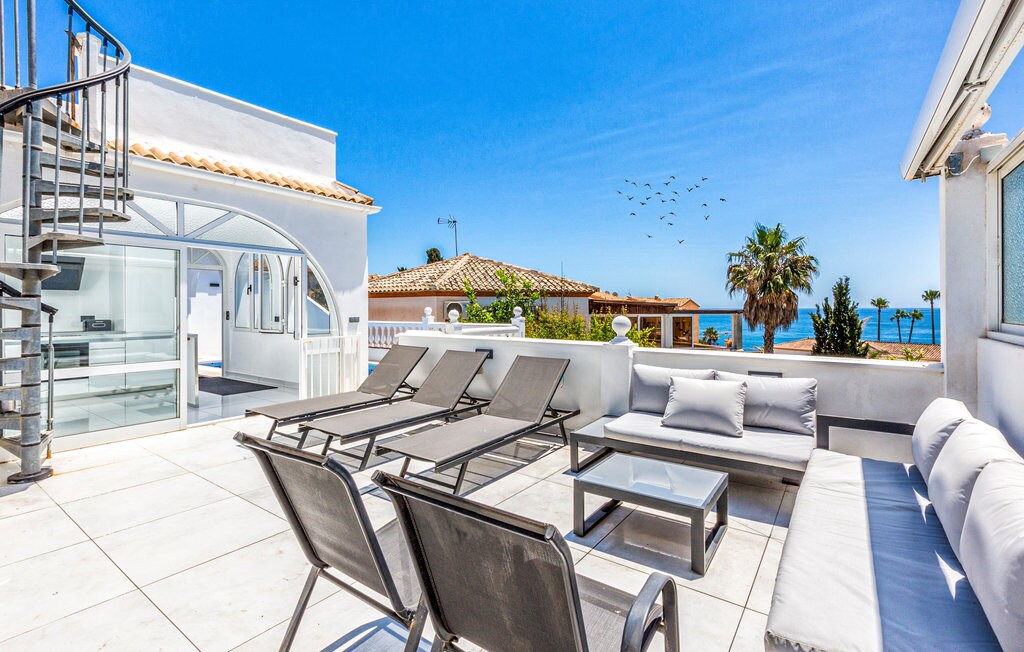 Luxusvilla a tengerparton. Az ingatlan 5 teljes hálószobával, 4 fürdőszobával és egy álomra nyíló kilátással rendelkezik. A privát medence, ahonnan kilátás nyílik a tengerre, és közvetlen hozzáférést biztosít a strandhoz, így ez az ingatlan kiemelkedő egy pompás luxus családi nyaraláshoz. A ház két nappalival, bárral és grillezővel, chillout területtel és napozóágyakkal, valamint több autó számára privát parkolóval rendelkezik. Marbella központjától autóval alig 12 perc alatt elérhető.