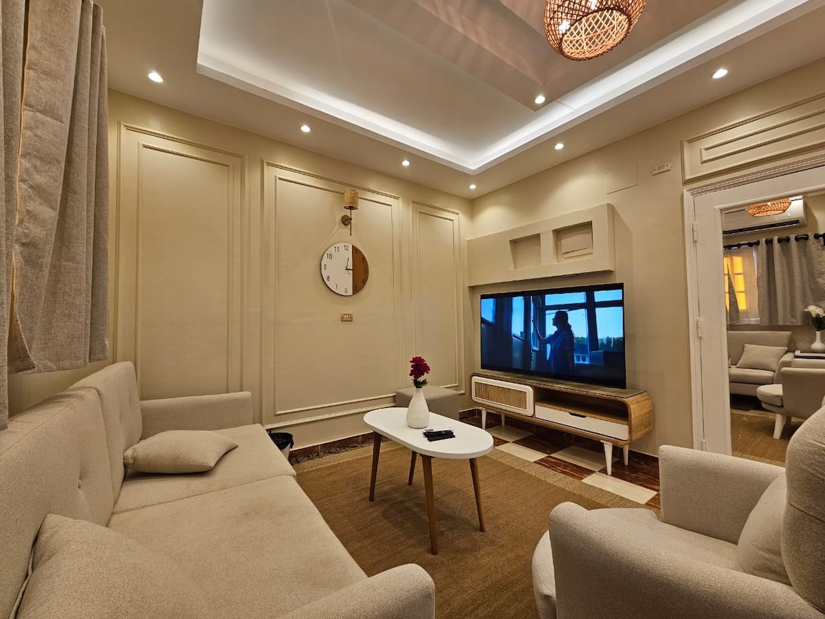 Teljesen berendezett lakás a Nílusra néző kilátással a Rose Island Club előtt. A lakás Mansoura szívében található, néhány lépésre a veseközponttól, a Mansoura Egyetemtől és az Orvostudományi Karától. A lakás teljesen felszerelt, és Wi-Fi-vel, biztonsági szolgálattal, lifttel rendelkezik, és megfelel a lakók minden igényének.