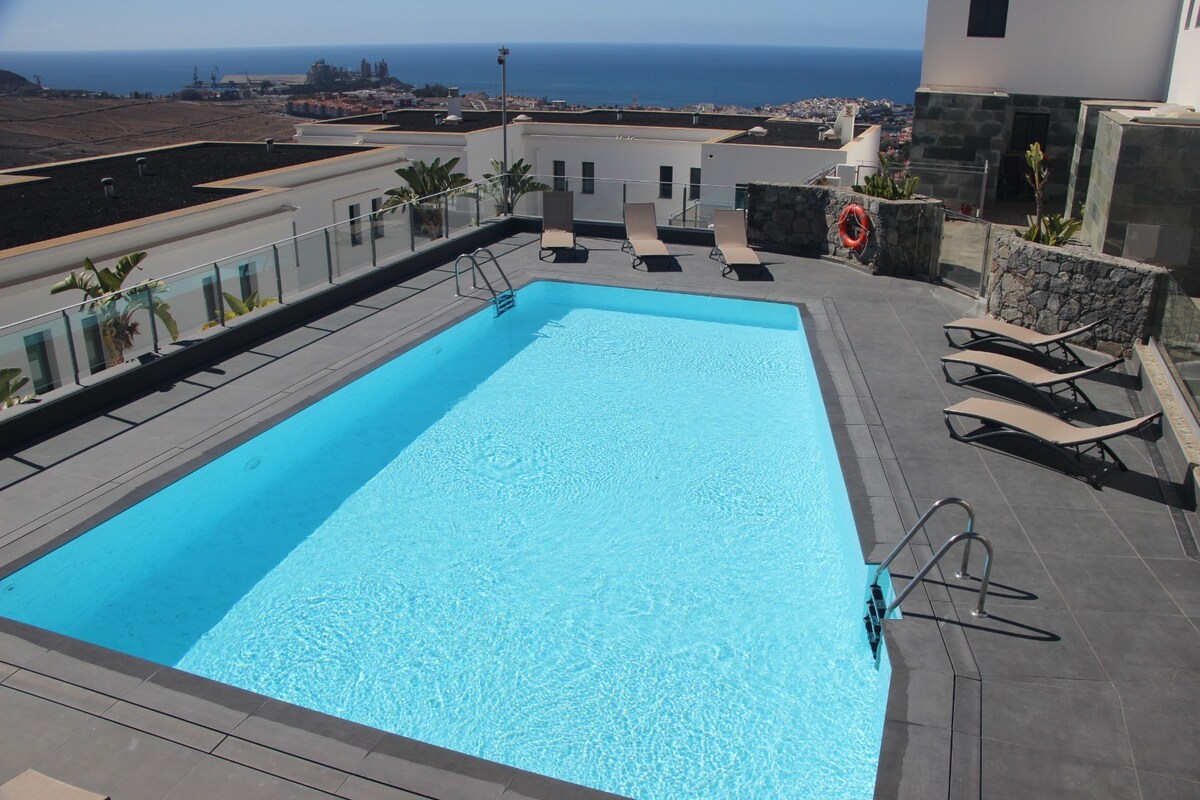 Ez a stílusos lakás tökéletes kiruccanás a rutinból, a stresszből és a soha nem végződő „Teendők listájából”. Mindenre gondoltunk, amire szükséged lehet, hogy magad mögött hagyhasd az aggodalmaidat: nagy privát terasz napozóágyakkal, kilátással az óceánra és naplementékre, úszómedencére és a strandra mindössze 10 perc sétára. Patalavaca üdülőhelyén található, nagyon közel az Anfi del Mar sziget egyik legszebb strandjához, Arguineguin és Puerto Rico városaihoz.
