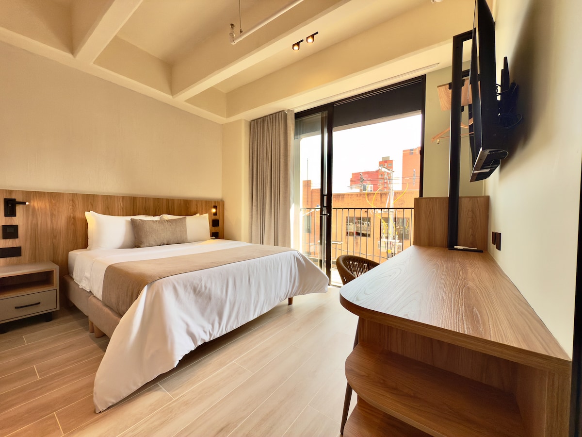 Habitación de 12m2 cuenta con cama doble, baño de 2m2, caja de seguridad. Incluye un delicioso desayuno gratis. Puedes contratar servicio de lavandería. Nuestra ubicación es estratégica para ir caminando a restaurantes, bares, parques, estación del metro, supermercados y tiendas en la zona más turística de la ciudad. Contamos con zonas comunes para que puedas ver TV, un espacio de coworking con internet de alta velocidad y terraza al aire libre libre con un BBQ para una rica parrilla.