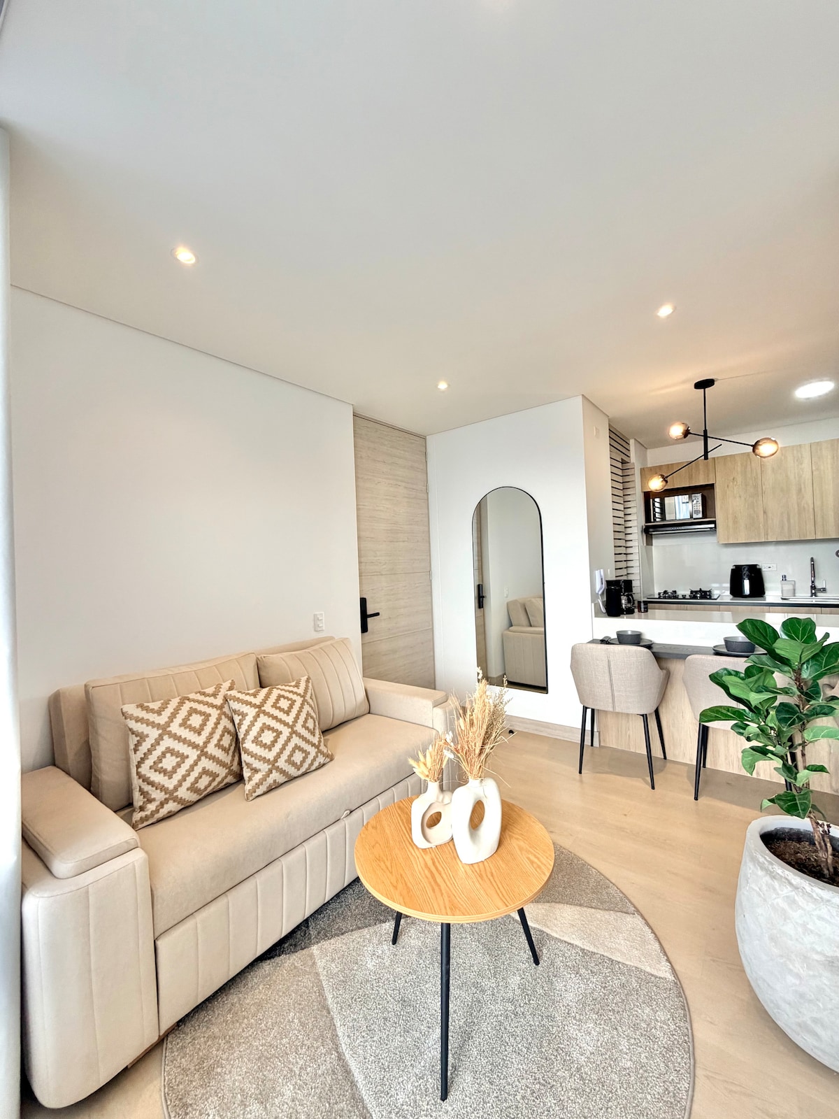 Luxury 70m² loft on the 9th floor of the iconic Energy Living. Open our floor-to-ceiling windows to transform your entire living space into an airy, open-air retreat with Medellin’s best skyline views. Features a King-size bed, two 80" TVs, and a sleek modern design. Enjoy a rooftop infinity pool, gym, and jacuzzi on the 22nd floor. Located 5 mins from Provenza and El Tesoro. Secure, quiet, and perfectly connected.