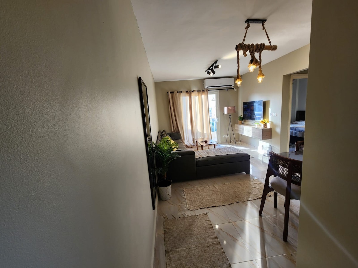 Located in Madinaty a calm, welcoming neighborhood, this cozy apartment is the perfect place to relax and recharge. Wake up to the gentle sounds of birds, enjoy your morning coffee in a sunlit nook, and unwind in the evening with soft lighting and a comfy sofa. Every corner of the home is designed for comfort and makes you feel right at home. Whether you’re visiting for a weekend getaway or an extended stay, this space invites you to slow down, breathe, and truly rest.”