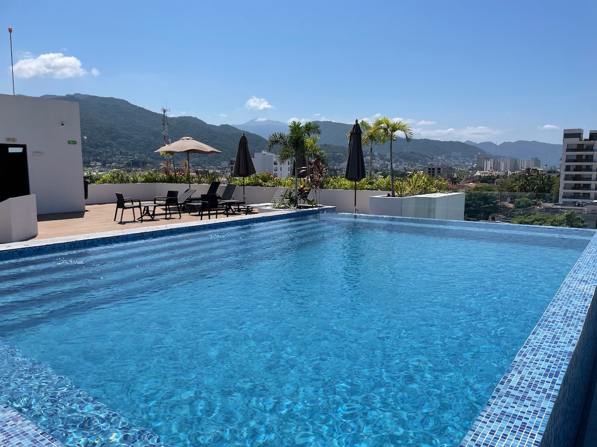 Fantasztikus, új, toronyházi lakás egy előkelő Marina Vallarta környéken, tetőtéri medencével és éjjel-nappali biztonsággal. Lenyűgöző kilátás mindenhol! Az apartman teljesen berendezett, és minden alapvető kellékkel rendelkezik. Tökéletes meleg és napsütéses nyaralásokhoz családdal és barátokkal egy nagyon varázslatos tengerparti úti célon. Sétálj egyet a kikötőben, és fedezd fel, mi mindent kínál Puerto Vallarta!