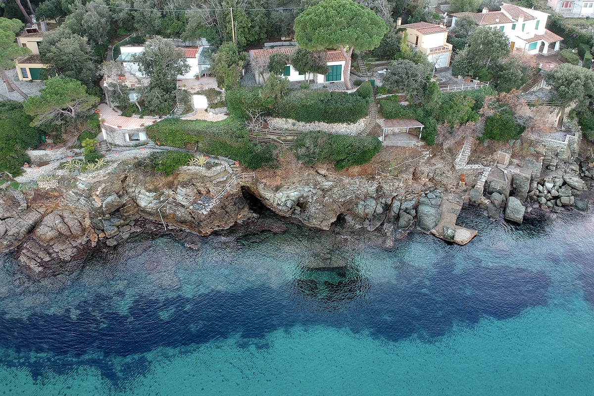 Igényes villa, néhány tucat méterre a tengerpart felett, bútorozott és nagyszerű kifinomultsággal és funkcionalitással rendelkezik, ahonnan varázslatos és felejthetetlen naplementékben lehet részed a Stella-öböl, Pianosa és Korzika öböl felett. Privát lépcsőházzal rendelkezik a közvetlen tengerparti közlekedés érdekében. Két szintre épült, amelyek két, teljesen független lakóegységből állnak, épületként és a kapcsolódó kertekben egyaránt, és csak a fő kültéri közös bejárattal rendelkeznek.