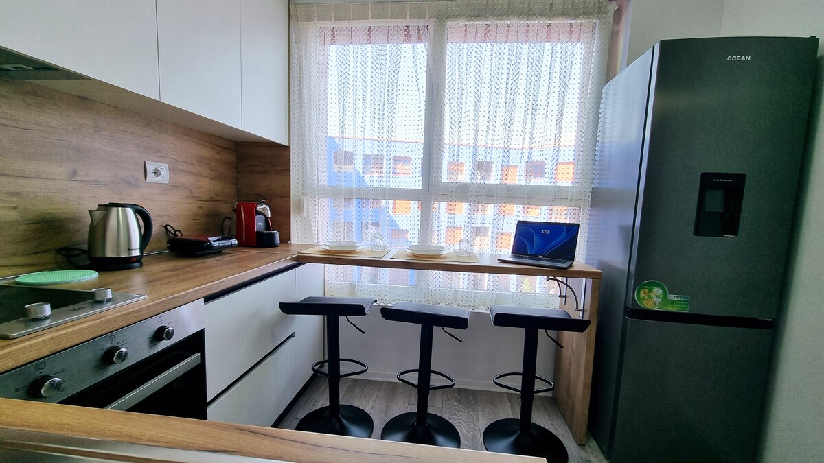Üdv a város legmenőbb lakásában! 😎 Tágas, két hálószobás lakásunk kényelmes és stílusos menedéket kínál a szálláshelyen eltöltött időd során. Az ablakokon keresztül áramló bőséges természetes fénynek köszönhetően a nyugalom és a megfiatalodás érzését fogod érezni, amint belépsz. Ahogy belépsz, egy elegánsan berendezett nappaliterület fogad. A nyitott koncepciójú kialakítás zökkenőmentesen köti össze a nappalit, az étkezőhelyiséget és a konyhát, így tökéletes hely a kikapcsolódásra. Teljesen felszerelt!