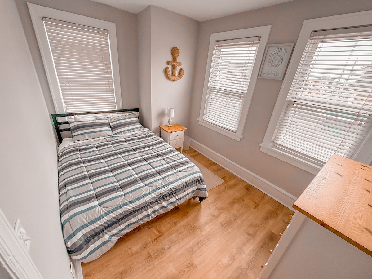Beautiful first floor, 1 bedroom/1.5 bath beach block OCNJ condo. There is a second story deck over looking the ocean. The condo was completely renovated and refreshed in 2026. Large master bedroom with full bathroom. There is an updated kitchen, large refrigerator, Wifi, two HDTVs , DVD player, Central AC and a washer/dryer. Sac O Subs, Mallon's Bakery and A la Mode ice cream within walking minutes from the condo. One mile from Corson's inlet for boating and kayaking. We rent all year.