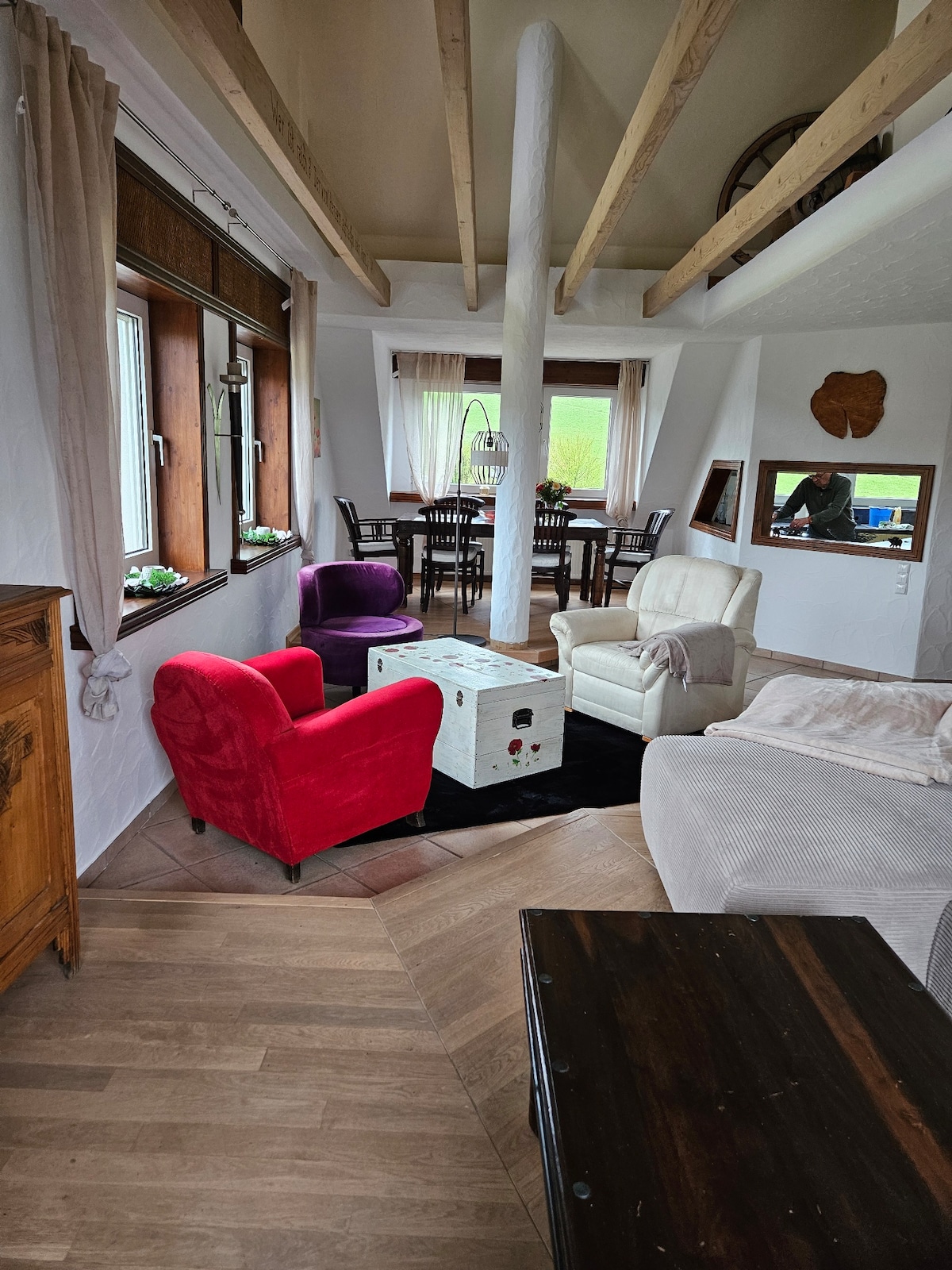 A kis fekete! Egy bájos házikó a Musenbergben. Egy gyönyörű, színes farmkert üdvözli a vendégeket. A fedett terasz arra hív, hogy a szabadban is jól érezd magad. Grillezéshez és főzéshez használd a kültéri sütőt. (tavasztól őszig) A tetőbe épített világos házat sok szeretettel rendezték be. Éld át a természetben töltött pihentető napokat! Túrázás és sífutás közvetlenül az ajtó előtt. Háziállatok kérésre szívesen fogadunk. Legfeljebb 1 kutya.