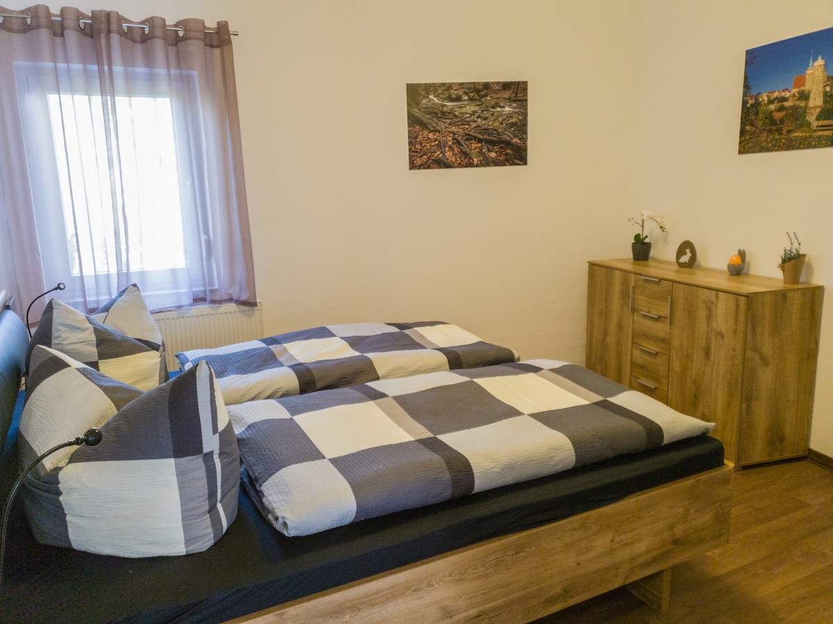 Modern, bútorozott lakásunk az óvárosban található, közvetlenül a Rossmann gyógyszertárral szemben. A lakásból megnézheted a gyönyörű Triebisch-t (folyó), és a központi elhelyezkedés ellenére nagyon csendes. A közvetlen közelben a város összes nevezetessége sétatávolságra található. Az Altstadt S-Bahn állomás 5 perc alatt elérhető. Az ajtó előtti parkolóhelyek ára 5 euró/nap, de 500 métert vezetsz, ezek ingyenesek.