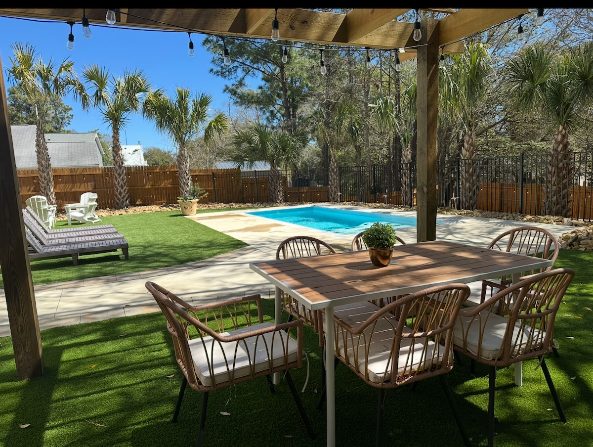 Álmunk életre kelt a Hook, Line és Stinkers nevű privát családi otthonunkkal. 5 perc sétára van a strandtól; minden tengerparti kényelmi szolgáltatást és egy kocsit biztosítunk. A nyitott alaprajz, az udvar, a terasz, a terasz és a medence nagyszerű a családi szórakozáshoz. A medencét március-május és szeptember és október felár nélkül fűtjük! Szabadtéri zuhanyzó és parkoló 4 autó számára. Minden ágyneműt tartalmaz. Központi helyen található a vásárláshoz, az ételekhez és az éjszakai élethez. Tölts egy kis időt a gyönyörű kristályparton.