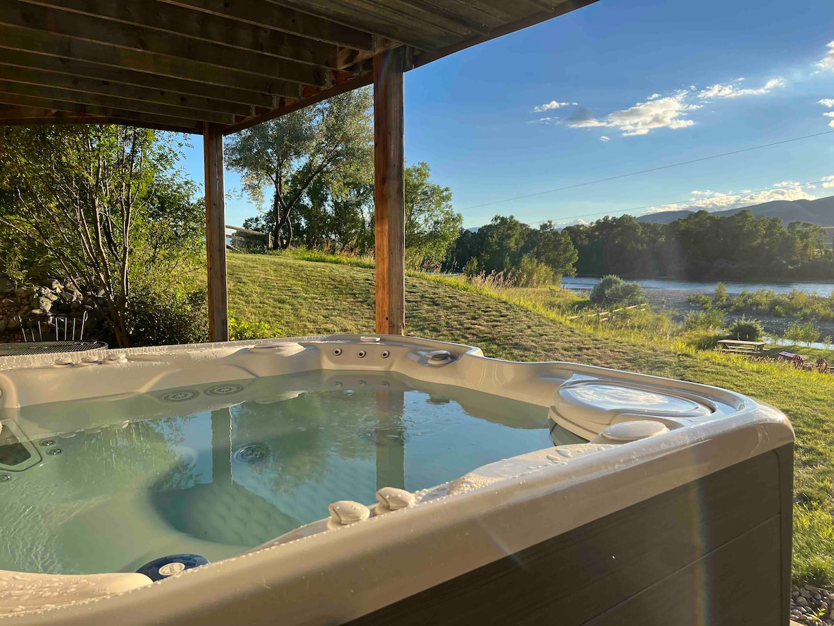 N. Bejárat a Yellowstone Openre! Rusztikus rönkház újonnan épült, a Paradise Valley szívében található! A Yellowstone-folyón halászó Blue Ribbon folyóparti területén található egy hálószoba és egy loftlakás 2 egyszemélyes ággyal, valamint egy kihúzható kanapé a nappaliban Queen méretű memóriahabos matraccal. Teljes fürdőszoba és konyha teljesen felszerelt, beleértve a piperecikkeket és a kamrai tárgyakat is. A nap végén pihenj és élvezd a lenyűgöző montanai naplementét a saját fedélzetedről vagy a folyók szélén!