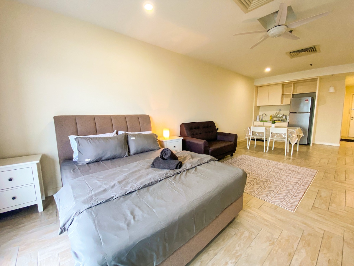 FREE NETFLIX & WIFI A getaway place to enjoy your moment, to spend your free time, to rest, to work, its a place for everything. Peaceful, very spacious , clean & comfy Studio unit. 1 Queen Bed, 2 Sofa bed, Dining area. Located at the heart of Damansara Perdana, its 1.5km away from IKEA, The Curve, IPC. 15minutes to KL, walking distance to MRT Mutiara Damansara. Plenty of restaurants, MyNews, 7Eleven, Steakhouse, Sushi, Starbucks & more!