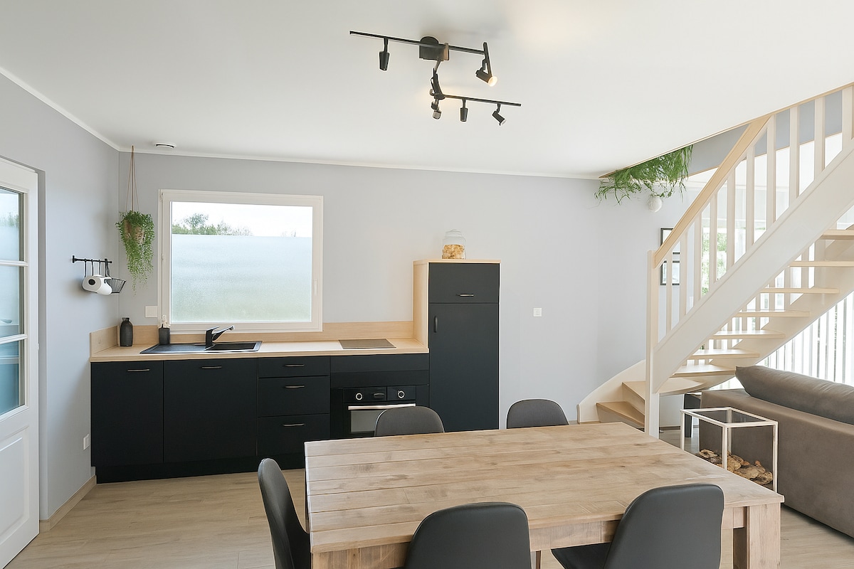 A régi parasztházban található Le Cottage egy teljesen felújított, légkondicionált vendégszoba, amelyet úgy terveztek, hogy valódi kikapcsolódást nyújtson. Élvezd a meghitt és kényelmes helyet, ahol számos kényelmi szolgáltatás vár a jólléted érdekében. ✨ Privát gyógyfürdő balneoterápiás fürdőkáddal, infraszaunával Kávéfőző és vízforraló (tea és kávé is rendelkezésre áll) Hűtő és mikrohullámú sütő 🔊 Marshall hangszóró Írásvetítő-hozzáférés a YouTube-hoz, a Netflixhez, a Disney+-hoz és a Canal+-csatornákhoz