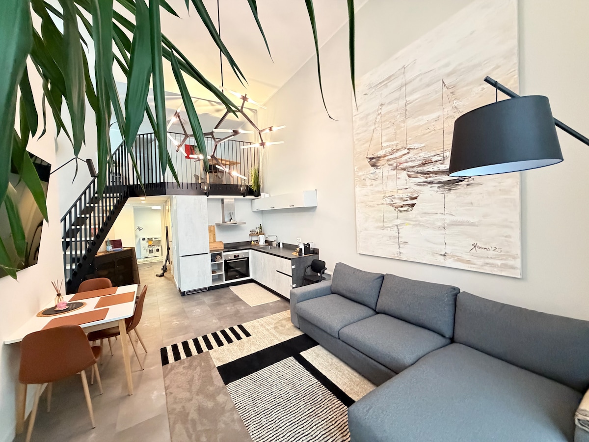 Kick back and relax in this stylish, cozy and calm space, just 300 meters from the sea. The fully equipped apartment ensures a comfortable stay with a spacious bedroom featuring a king-size bed, ample wardrobe, and a compact workspace. The living room offers a cozy sofa bed, and the kitchen is well-prepared for your culinary needs. The terrace is furnished with comfortable lounge chairs and a dining table, creating an inviting outdoor space for relaxation.