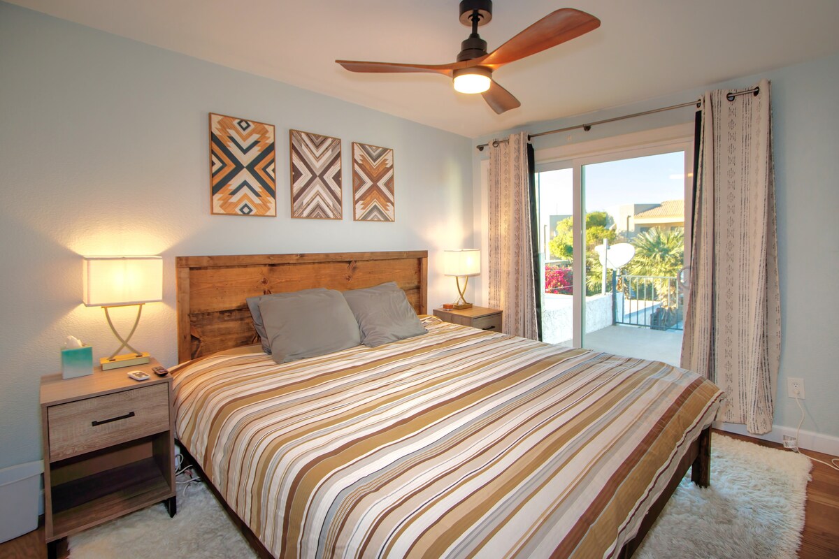 Teljesen felújított első emeleti társasházi lakás. Egy king méretű ágy és két királynő (Marriott ágynemű) fedett parkolóval, két fűtött medencével, pezsgőfürdővel, korszerű edzőteremmel, rekreációs helyiséggel, grillezővel és zöldterületekkel. Központi elhelyezkedésű, mindössze pár percre a Sky Harbor repülőtértől, sétatávolságra a híres Papago Parktól, a Phoenix Állatkerttől, a Botanikus kerttől, a Phoenix Municipal Stadiontól, az ASU-tól/Tempe-től. Könnyen megközelíthető a Phoenix Light Rail System és buszjárat Phoenix, Tempe és Mesa belvárosába. Csupán pár percre az Old Town Scottsdale-től.