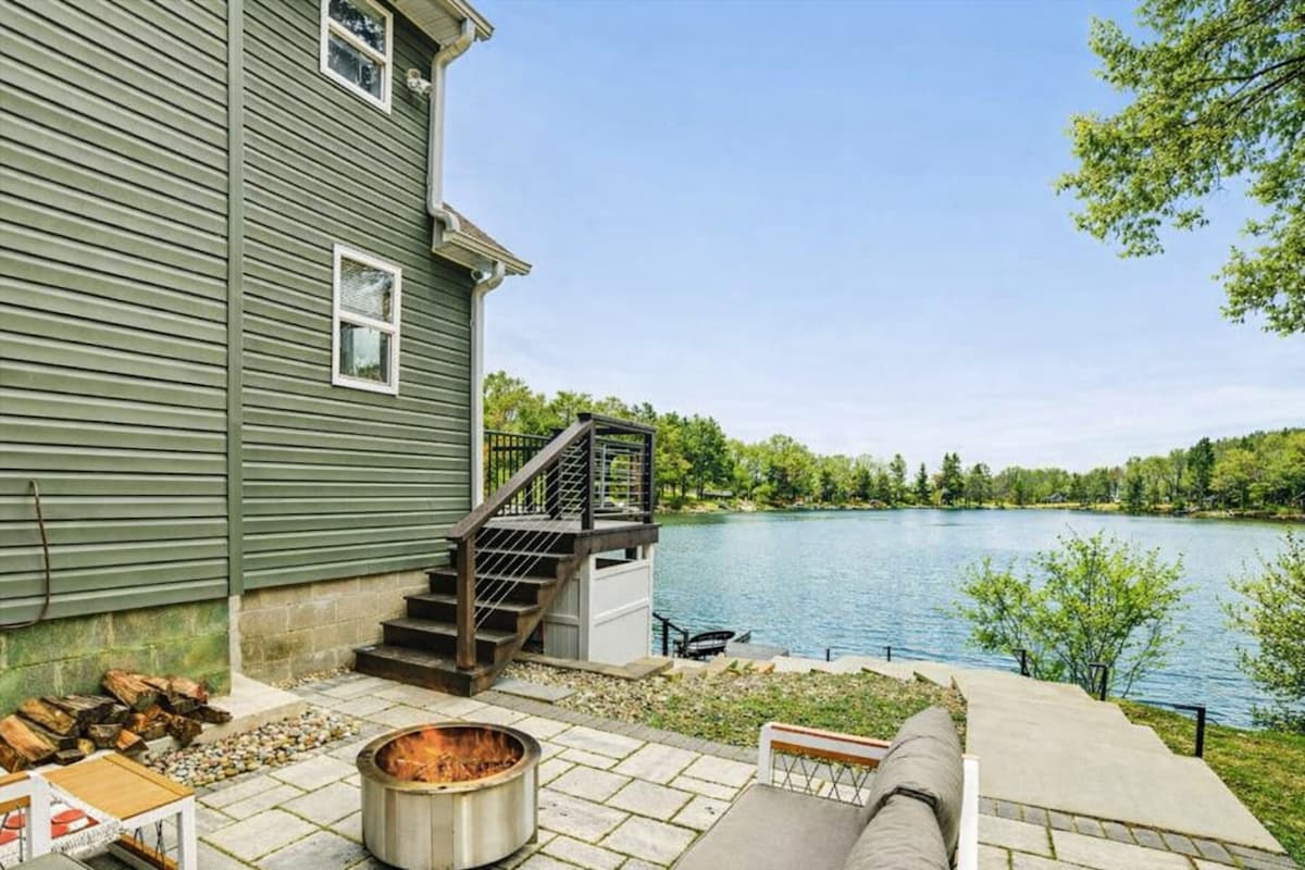 Pihenj az egész családdal ezen a békés helyen. Az alagsor egy fantasztikus játékterem biliárdasztallal, shuffle deszkával, pingponggal és rengeteg játékkal. Imádni fogod a folyóra néző étkezőhelyiséget és a hangulatos kandallót. Lazíts a főfürdőben egy nagy káddal, kilátással és kandallóval. Vagy menj a pezsgőfürdőbe, ahonnan gyönyörű kilátás nyílik a folyóra. A folyóhoz való hozzáférés egy rövid túra egy ösvényen ezen a 2,8 hektáros ingatlanon, ahol horgászhatsz vagy elindíthatod a tubusodat, kajakodat vagy kenut!