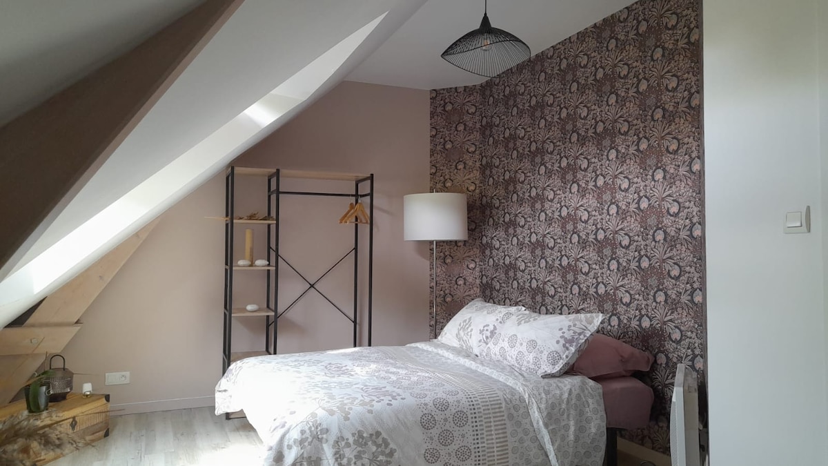 Hely egy párnak, esetleg egy vagy két kisgyerekkel. Kétszemélyes mosdó zuhanykabinnal. Független hozzáférés, egyszerű parkolás lehetősége. Lehetőség van reggelizni. Elhelyezkedése lehetővé teszi, hogy meglátogasd Nantes-t (beleértve a nantes-i utazást is) az Erdre vagy a Loire partján. Kevesebb mint 1 órányira vagyunk a tengertől, Pornic kikötőjétől vagy La Baule strandjaitól