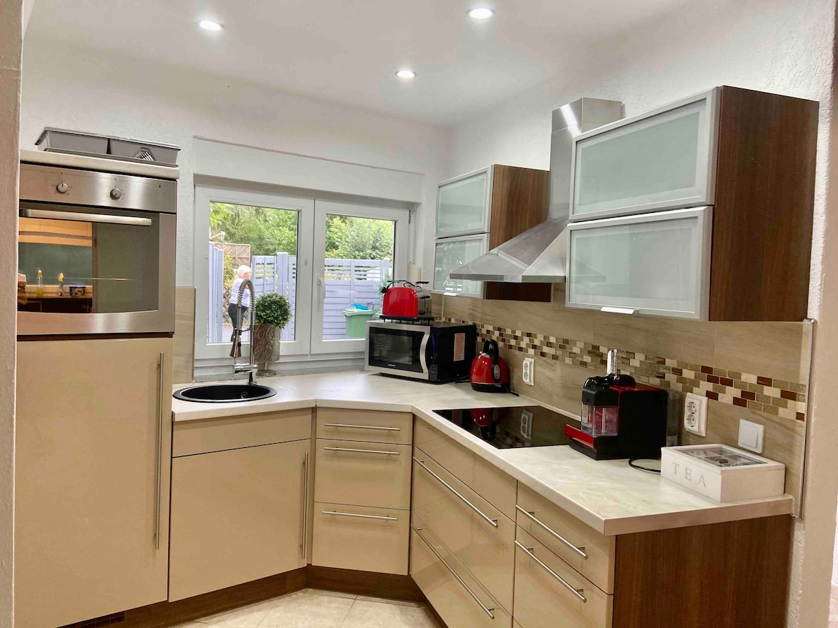 Egészséges élet az új öko-házban! Apartman az alagsorban (meleg, 2 ablak, normál mennyezeti magasság) egy újonnan épült faházban -marthome-vezérelt szellőzés - teljesen új és jól felszerelt Konyha: hűtőszekrény fagyasztóval, indukciós főzőlap, nagyszerű mikrohullámú sütő sütési / grillező funkcióval, elszívó, vízforraló, kávéfőző (kapszula) . Ágy 120x200 kényelmes ágyneművel
