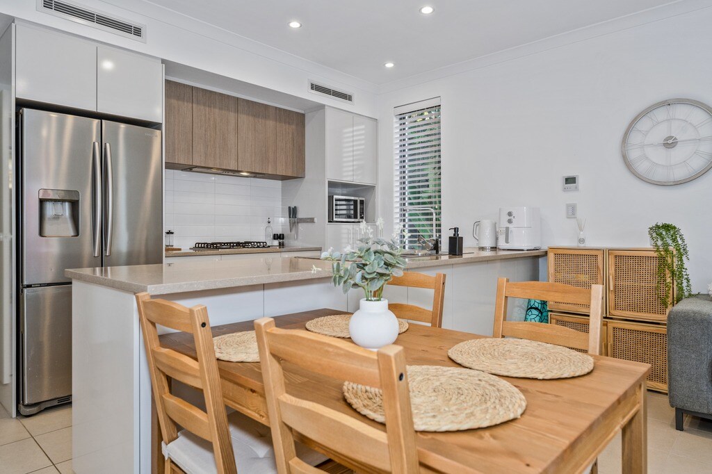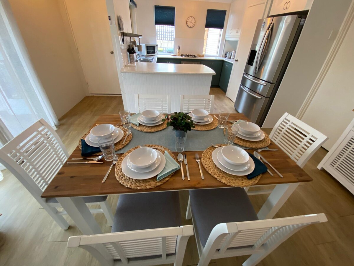 „Sundara” – tágas, 3 hálószobás otthon | Mandurah Foreshore közelében Üdvözlünk a tökéletes mandurahi kiruccanáson! Ez a modern, teljesen felszerelt otthon pároknak és családoknak készült, hogy meghitt kiruccanást biztosítson. Ez a tágas otthon 3 hálószobával és 2 fürdőszobával rendelkezik, fényűzően berendezett, és kényelmesen elfér benne akár 6 vendég is. Ez az otthon a Mandurah partvidékének közvetlen közelében található, egy csendes környéken és egy békés, zsákutcai környezetben – csak pár percre a strandoktól, üzletektől és a torkolat menti sétálóutcáktól.