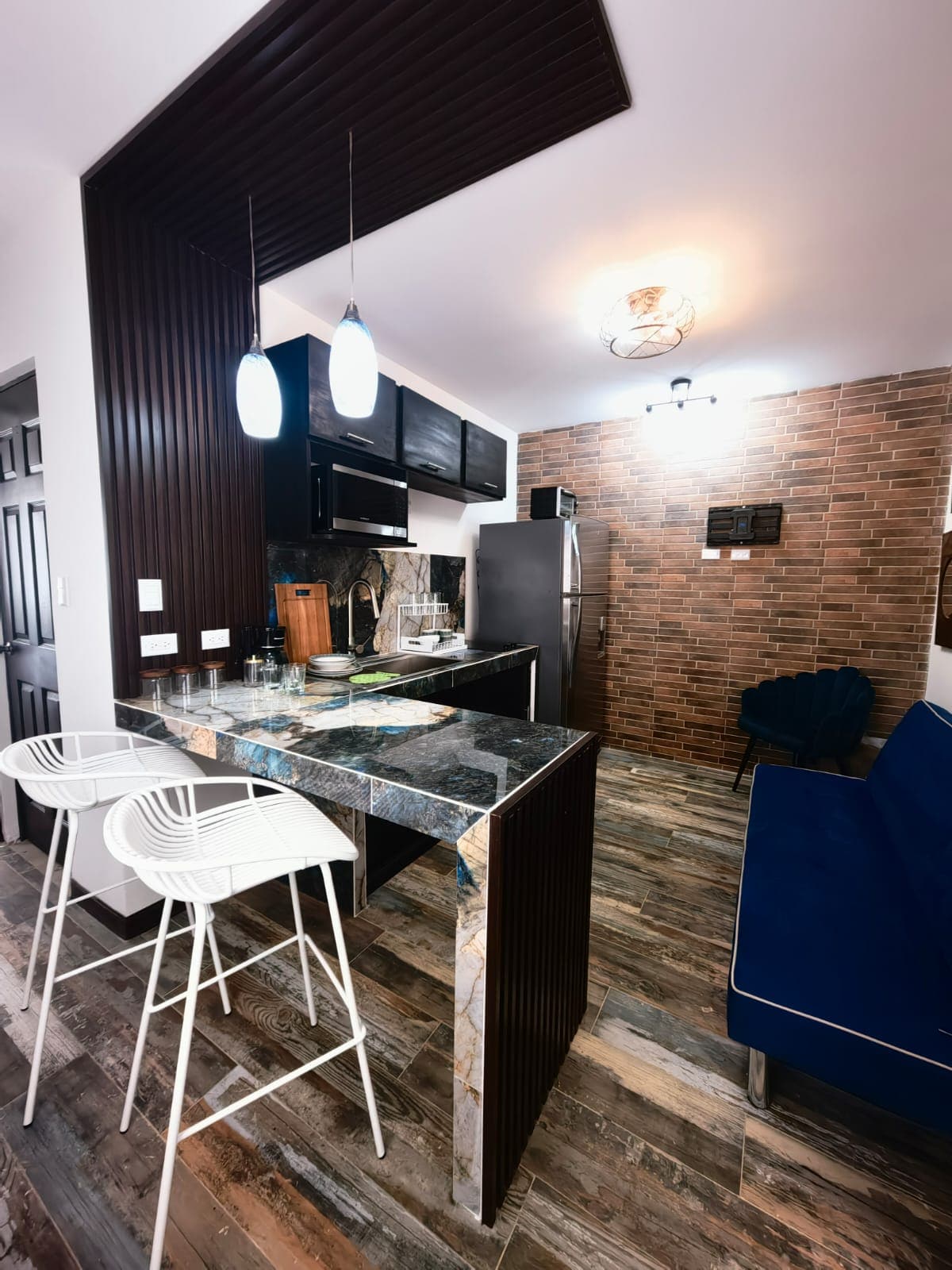 Élvezd a kortárs eleganciát az Euroloftban, amely egy nagy (220 négyzetméter/ 2368 négyzetláb) világos, duplex, modern tetőtéri penthouse-ban Guachipelín de Escazúban. Ez az exkluzív hely padlótól a mennyezetig érő ablakokkal, 2 tágas hálószobával, gardróbbal, 3 teljes fürdőszobával (2 fürdőszobával, 1 jetted káddal), félemeletes TV-szobával és queen méretű kanapéval rendelkezik. Teljesen berendezett és felszerelt 3 okostévével, csúcskategóriás készülékekkel, mosógéppel, szárítóval, mosogatógéppel, légkondicionálóval. Két jármű parkolására alkalmas parkolót és tágas erkélyeket kínálunk mindkét emeleten.