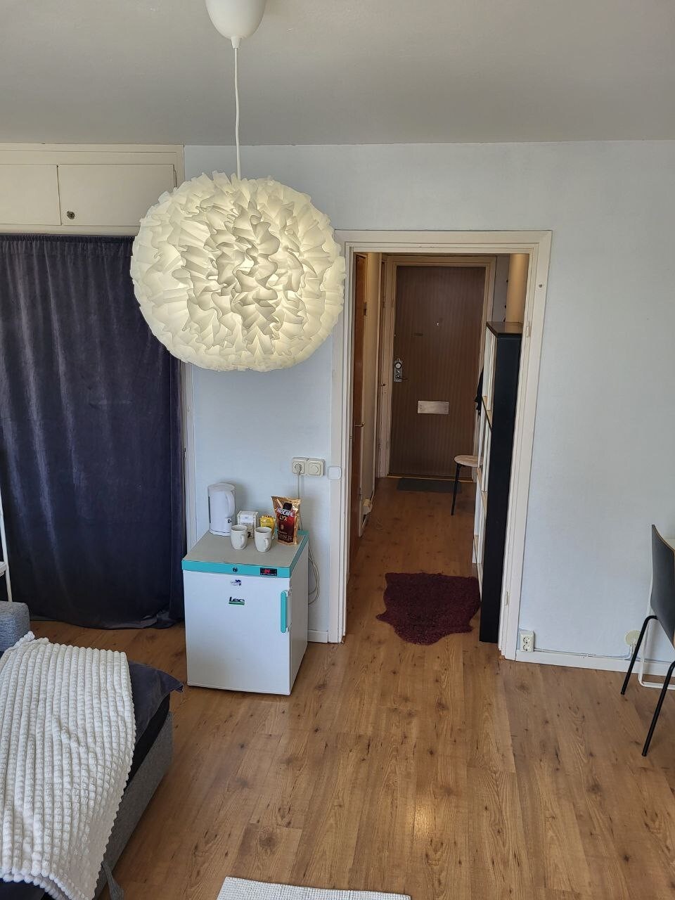 Ett litet rum med enkelt kök, matplats och säng i samma rum samt badrum och hall . Eget boende med entré från trapphuset och delar inte med någon. Belägen centralt i kulturkvarter och nära Mälaren. Tillgång till trädgårdsmöbler. 7 min promenad från stationen och centrum. 85 km från Stockholm dit du enklast åker tåg på 48 min med Mälartåg. Ett boende som passar för övernattning och enklare matlagning.
