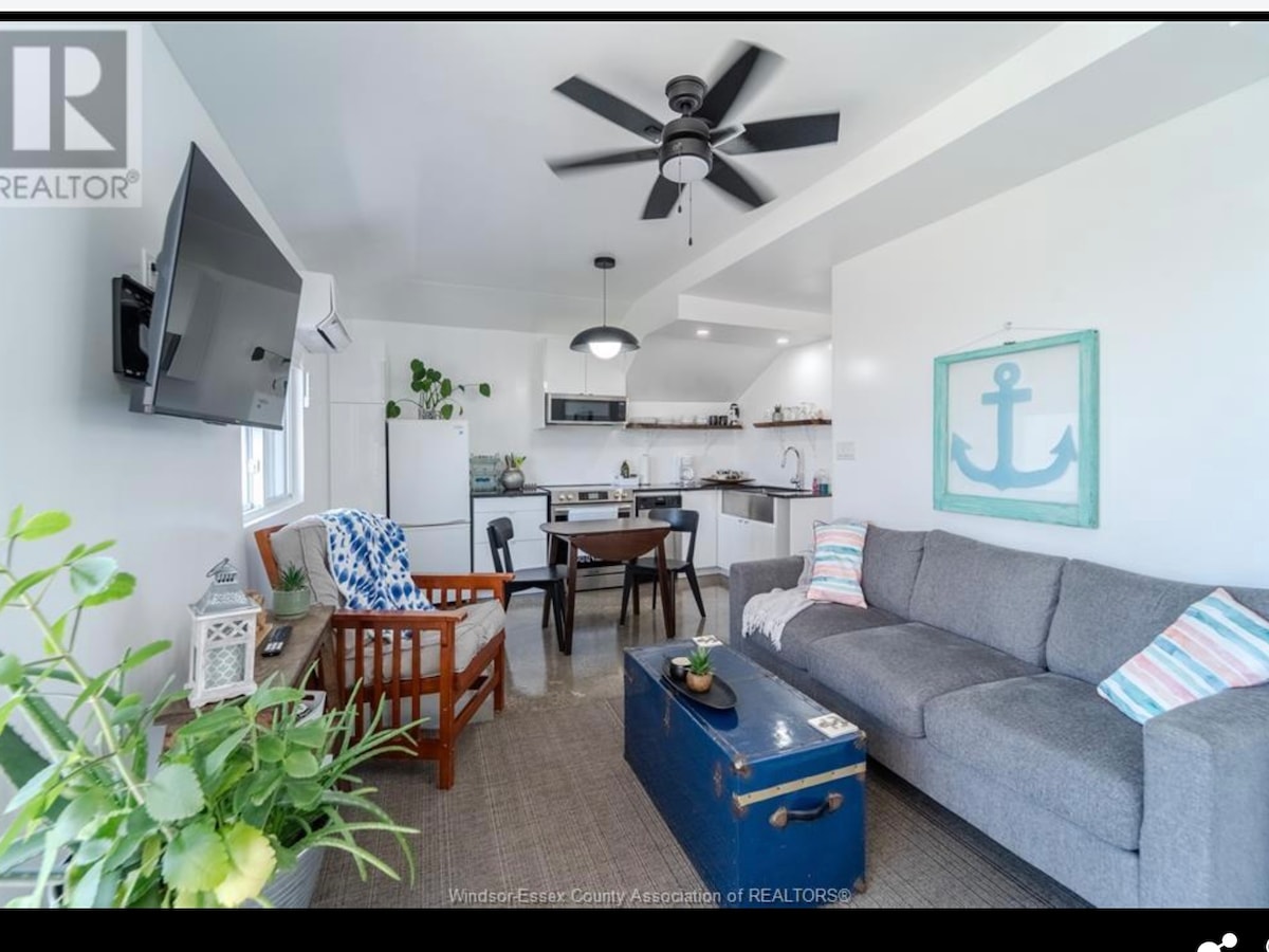 Lenyűgöző kilátás napkeltétől napnyugtáig. Lazíts békésen, lélegzetelállító kilátással, amely az első reggeli fénytől a ragyogó Erie-tó naplementéjéig felkavarja a lelket. A történelmi Amherstburgtól mindössze 10 percre található hangulatos, teljesen felszerelt lakásunk a kényelem, a természet és a kényelem tökéletes elegyét kínálja egy privát stranddal és egy tágas hátsó udvarral. Lépj ki a privát teraszodra, és élvezd a reggelit, miközben nézed, ahogy a hattyúk és a madarak énekelnek a fák között.