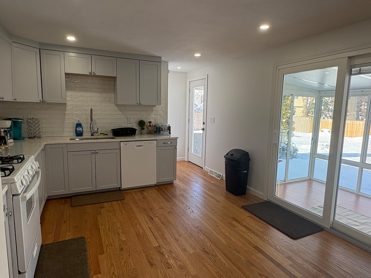 Enjoy this newly renovated, cozy, two-bedroom condo right on the edge of downtown Salem! Beautiful open concept with a great living room area for TV & nice kitchen with all the amenities you could need. 2 bedrooms with one doubling as a home-office (incl. monitor.) Central AC/heat and room for two parking spots in back driveway (a rare-find in Salem!) A 6 minute walk gets you to the train into Boston, 10-15 minute walk to restaurants, bars, and all the historic features Salem has to offer.
