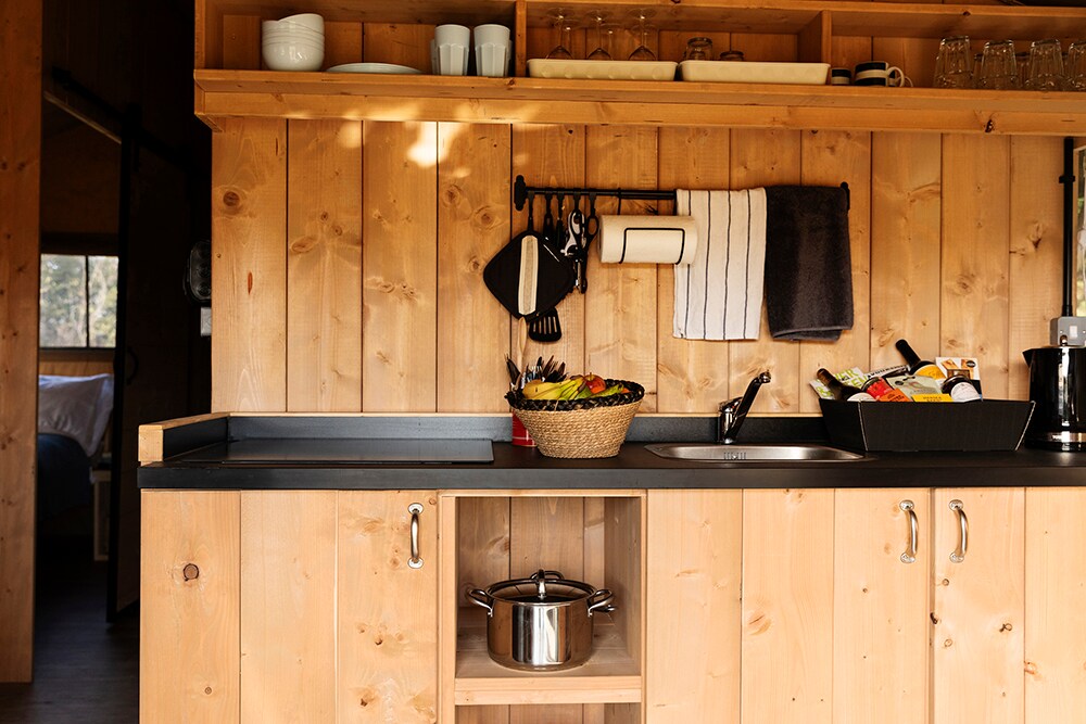 Get away from it all with our fabulous safari tents. Sleeping up to 6 people in 3 bedrooms they are perfect for friends or families. They have a large living and dining area as well as a built in shower room and kitchenette. The windows allow light to flood into all areas inside, and the spacious veranda allows you to be at one with your surroundings. With underfloor heating and insulated canvas you will feel cosy even on colder days.