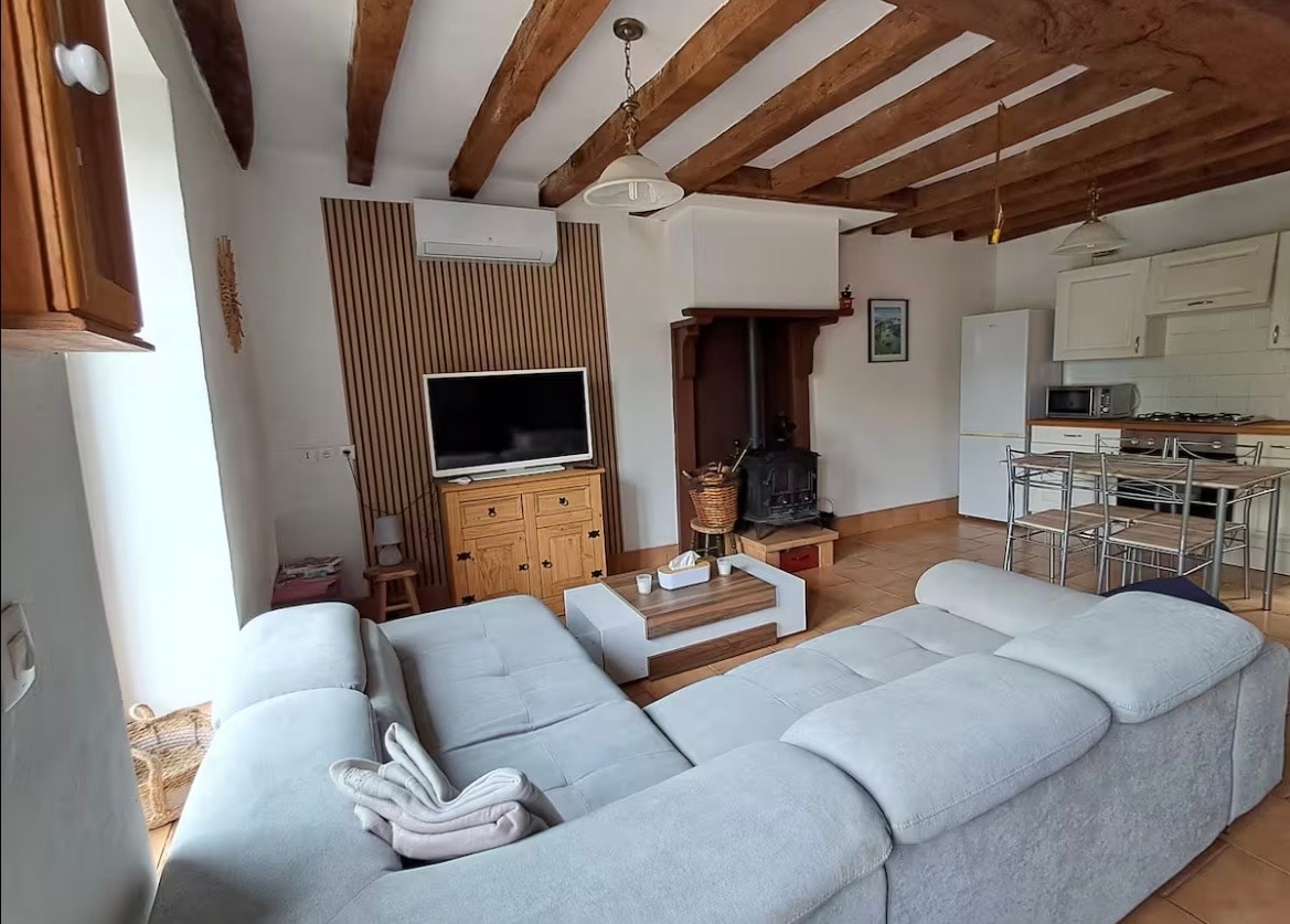 Bienvenue au Gîte Pierre & Modernité, une retraite idyllique mêlant charme rustique et confort contemporain. Nichée au cœur de la campagne, cette maison en pierres offre une expérience unique où tradition et modernité se rencontrent harmonieusement. Avec ses belles poutres en chêne et son intérieur moderne, le gîte propose un salon spacieux avec un canapé convertible et une cuisine entièrement équipée