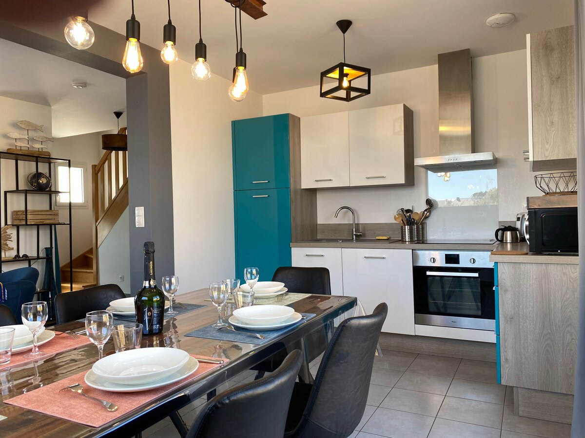 Ez a meleg és világos ház, egy nagyon csendes lakóövezetben, kevesebb mint 10 perc sétára a strandoktól és a központtól, lehetővé teszi, hogy kellemes időtöltést tölts a családoddal. Etel, egy kis falu a szárazföld és a tenger között, kis autentikus kikötőknek, titkos strandoknak és híres osztrigaparkoknak ad otthont. A takarítást a helyszínen kell kifizetni (85 €) (olvasd el a szálláshely leírását) Fontos információ: Júliusban és augusztusban a foglalások péntektől péntekig tartanak.