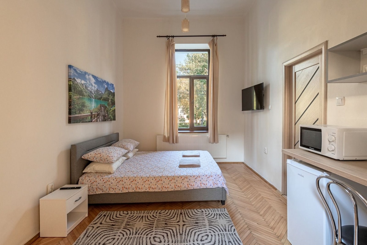 Gyönyörű stúdió parkra néző kilátással! Légkondicionálóval felszerelve.