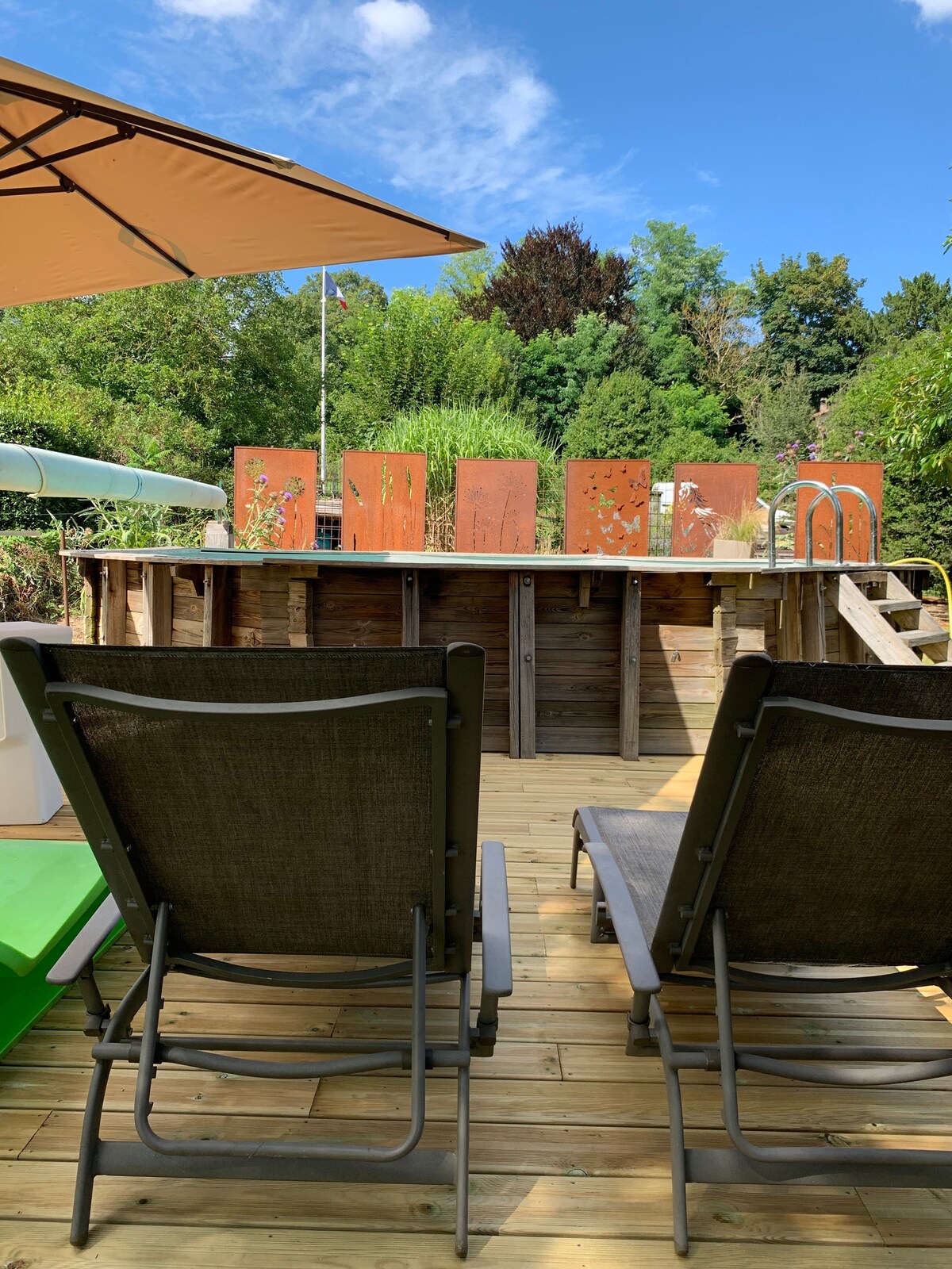 A 14 hektáros kertből, rétekből és erdőkből álló, 2,4 km-es parkosított ösvényekkel rendelkező birtokunk zöld Périgordban fogad. Találsz 2 kisházak köztük 1 tökéletes elhelyezésére két ember. 180x200-as kétszemélyes ágy. Gyönyörű, teljesen felszerelt nappali. Olasz zuhanyzó. Nagy, nyugati fekvésű terasz kerti bútorokkal és étkezőasztallal. Közvetlen hozzáférés a nagy, fűtött úszómedencéhez szezonban. Fürdőköpenyek és fürdőszobai törülközők elkísérnek a gyógyfürdőbe (jacuzzi és szauna). Hegyi kerékpározás áll rendelkezésre.