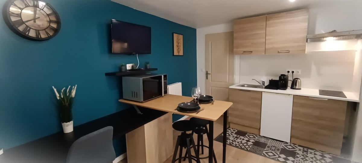 Esbly 👉 központ, ✦ állomás és üzletek✦, közvetlen busz a Disney és a Val d'Europe felé 🏠lakás (30m²): 1 hálószoba Esbly központjában. 🛏️ Lattoflex kétszemélyes ágy, nagy kényelem. 🍳 Felszerelt konyha + új 🚿 fürdőszoba. Privát 🚗 parkolás és videomegfigyelés. 🎢 Disneyland Paris: 15 perc busszal (éjfélig) / 8 perc autóval. 🛍️ Val d'Europe és La Vallée Village: közvetlen buszjárat. 🚆 Vasútállomás 2 perc sétára, → Párizs 30 perc. Üzletek és éttermek a lábadnál.