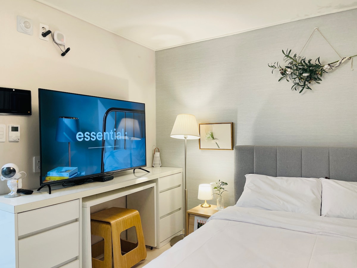 A new built Central view suite Residence within 3 minutes of 2 subway station *Recepció és poggyásztároló és vendégváró: B1F (angol és kínaiul beszélő személyzet áll rendelkezésre, reggeli szolgáltatás (fizetős)) *nemdohányzó ingatlan. bírság: 150 000 won. * Kávéfőző és üdvözlő kávékapszula, bidé , ivóvíztisztító *Minden, amire szükséged van, akárcsak az otthonod. *2 vendég egy ágyat használ. Ha a külön ágyakat részesíted előnyben, kérj előre(fizetős) * Három vagy több ember számára egy kanapéágyat állítunk fel ágyként.