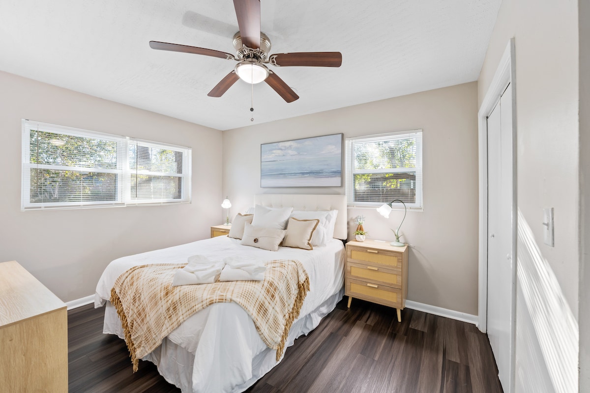 *Nincs takarítási díj* Lazíts a tágas „Big Blue” negyedben, amely az Euchee Creek Greenway mentén elterülő gyönyörű favonalra néz. A Big Blue egy nagyszerű környék külső peremén található, ahol nincsenek szomszédok az ingatlan mögött. Ez tökéletes arra, hogy a teraszon üldögélj, és élvezd a fás kilátást egy nagy csésze kávéval az ingyenes kávézónkból. Függetlenül attól, hogy Masters bajnokság pártfogó, utazó üzleti szakember, katonai család vagy baráti társaság vagy, a Big Blue remekül illik hozzád.