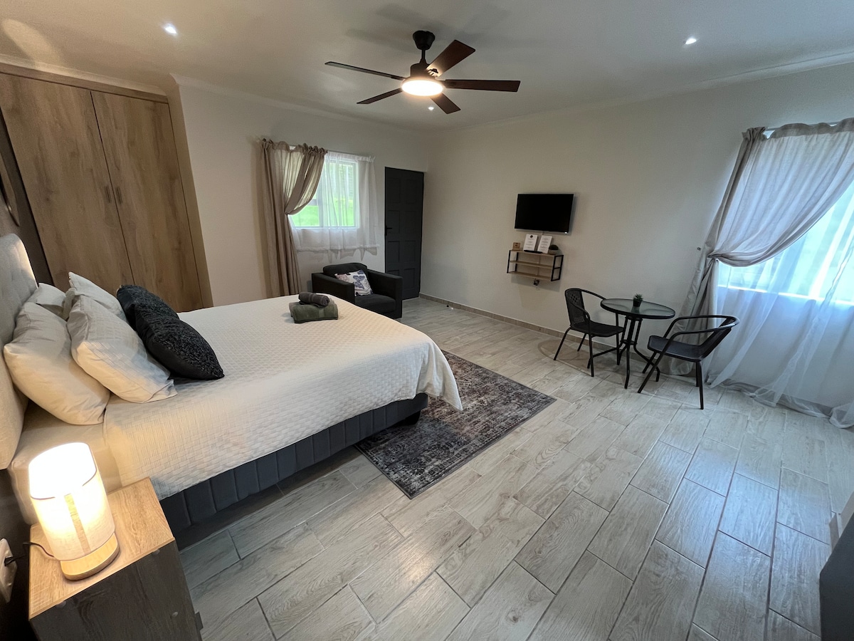 Private spacious room with queen size bed, on-suite bathroom, built in cupboards, Samsung 50" UHD TV, uncapped fibre, desk for working and mini kitchen with basic essentials, microwave, fridge and kettle. Peaceful environment, lush gardens with an abundance of bird life. Close to Hillcrest, Kloof, Assegai, Botha's Hill & Waterfall. Great for couples, solo adventurers and business travelers. Generator for when there is load shedding and safe parking on the premises.
