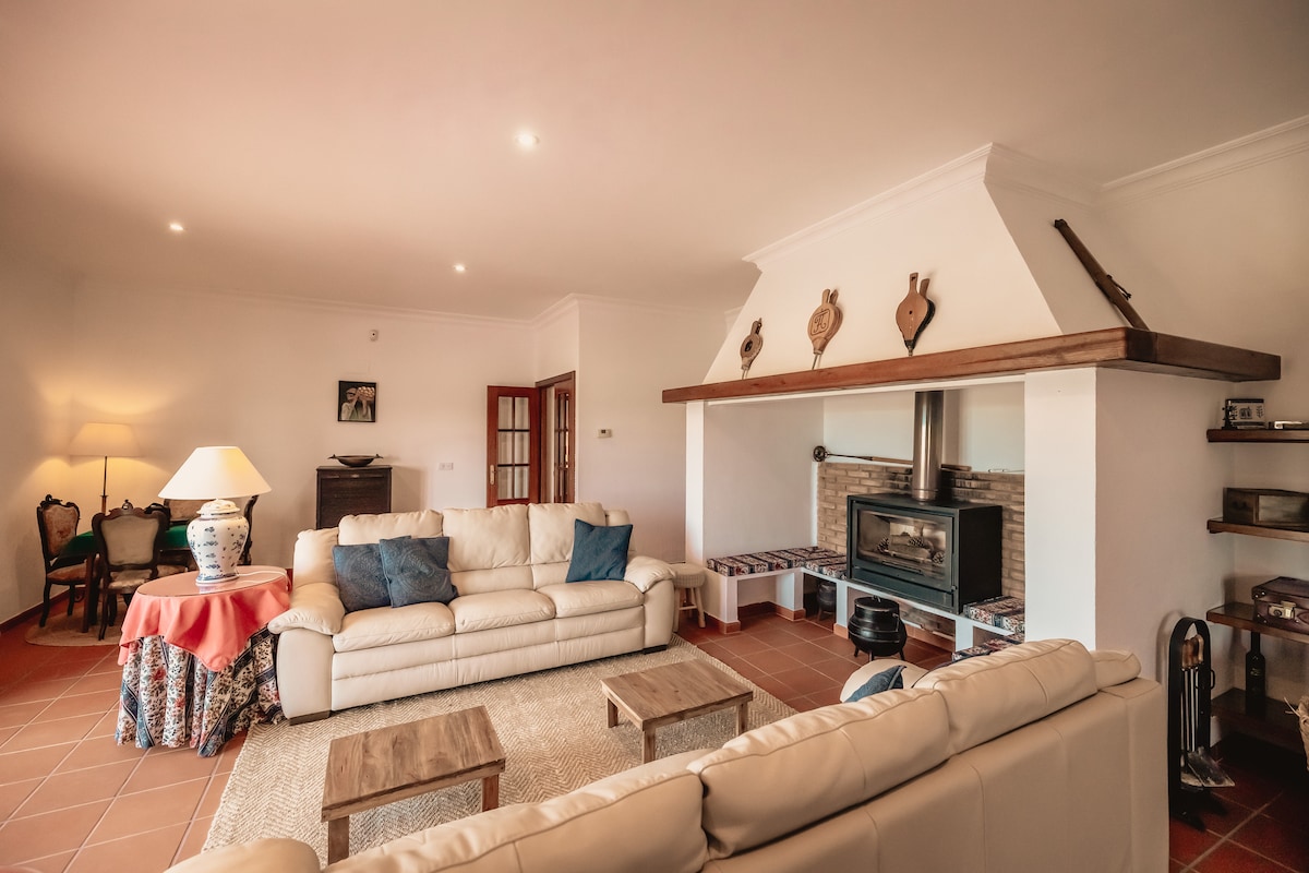 Egy hely, ahol ébredéskor madárdal és a fák lengése kíséri, amely szellős és csendes, és békét áraszt. Az Alentejo szívében, 90 percre a fővárostól és három percre a központtól, szőlőültetvényekkel körülvéve, ez a bájos, modern, retró stílusú falusi ház csodálatos kilátást nyújt az Alentejo-síkságra, és békés, kényelmes szállást kínál kábelcsatornákkal, ingyenes Wi-Fi-vel, valamint légkondicionált hálószobával és nappalival, illetve fatüzelésű kályhával.