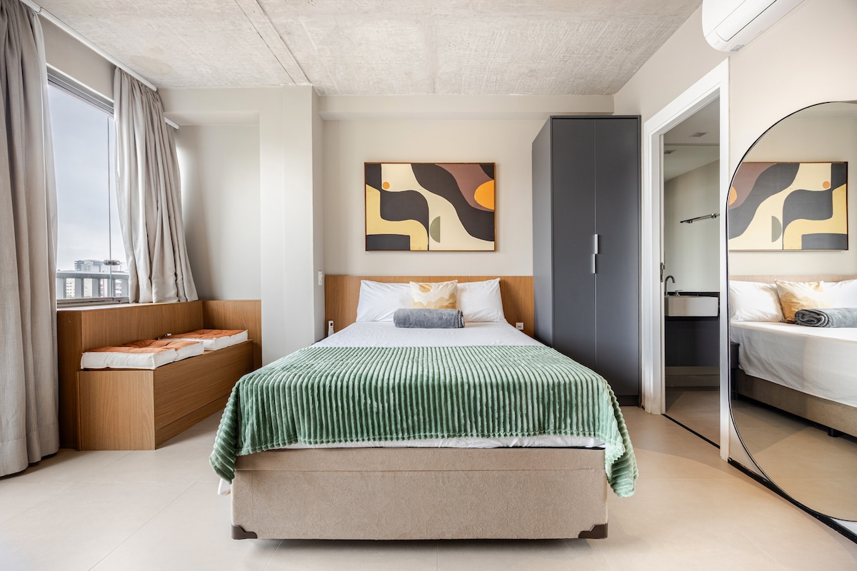 Stúdió kilátással a városra Bom Retiróban (ágy + kanapéágy)