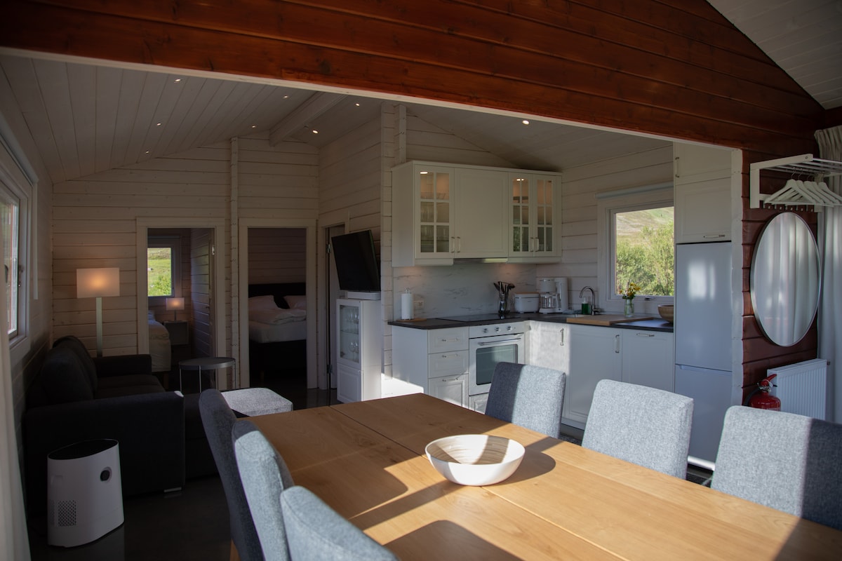 Our three cottages complex cuddled into nature in Húsavík suburb serves as a tiny home, away from home where you have a lot of privacy and comfort in as close proximity to the spirit of nature as possible. Our land has stunning views of the Cheek Mountains , abundant bird-life, spectacular nature and wildlife, country comfort and urban activities and service in town. Walking paths are along the lakes and to surrounding places. Minimum rental is 2 nights.