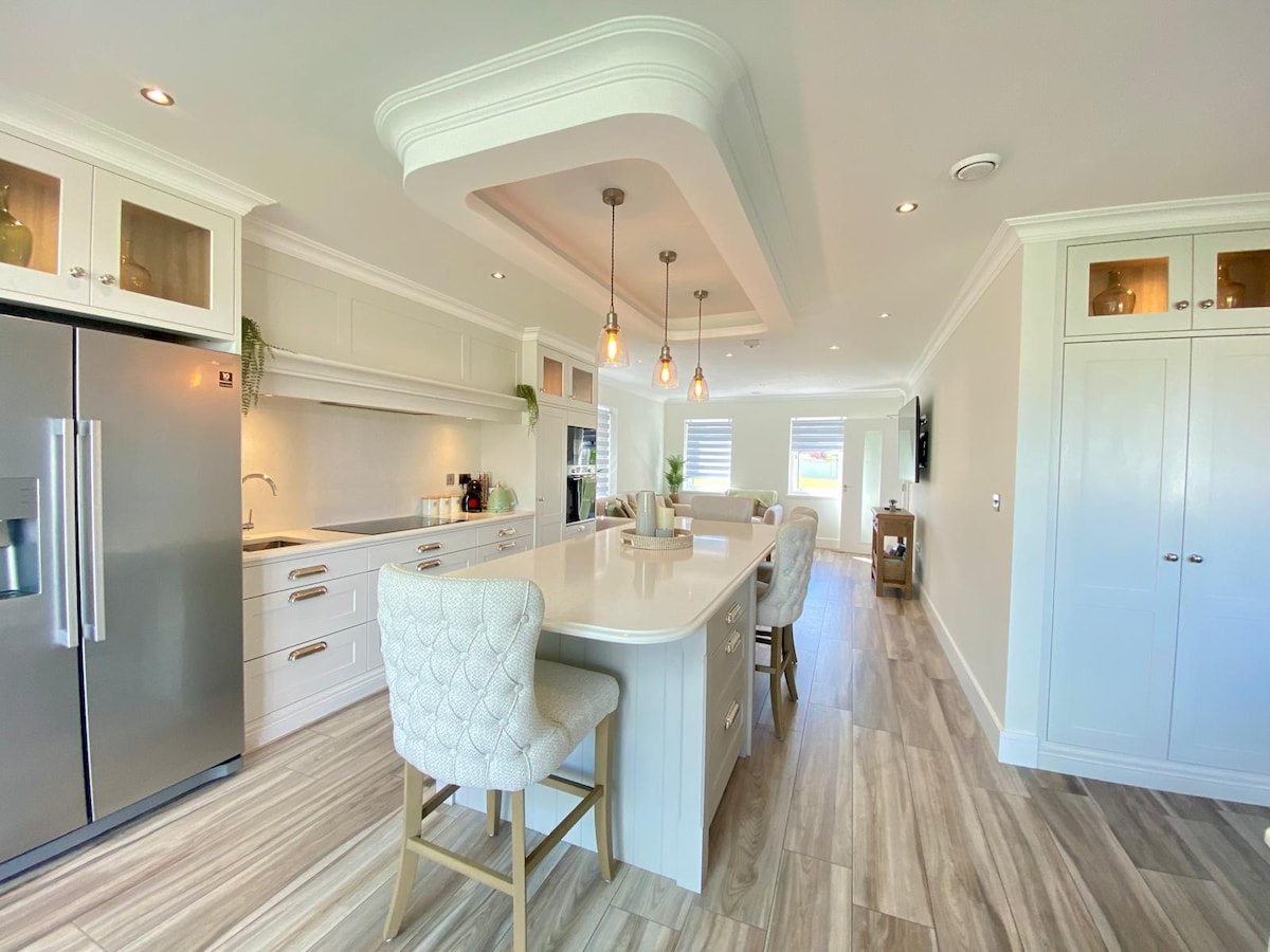 Ez a lenyűgöző és fényűző vidéki stílusú ház ideális kiindulópont a Kerry Holidayhez. Killarney városától mindössze 10 percre, Killorglintől pedig 5 percre található szálláshelytől élvezheted a látványos kilátást Carrauntoohilra, az Irelands legmagasabb hegyre. Nyaralónk közvetlenül a folyó partján található, és ingyenes halászati jogokat biztosít a lazac- és tengeri pisztránghalászathoz. A fészerünk fel van szerelve, hogy kibelezhesd és megfőzze a fogást! Élvezd a golfot a közeli Killarney golfklubban, amely az Irish Open négyszeres házigazdája. Elektromosautó-töltő!