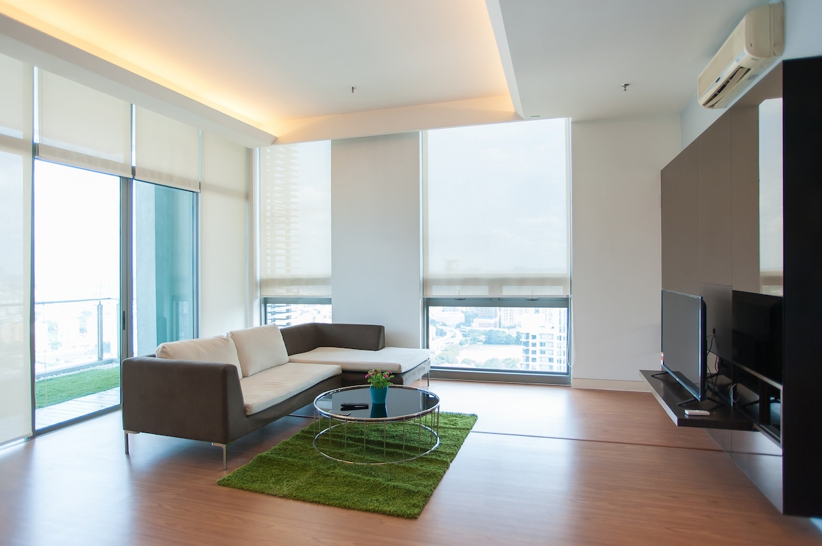 Két hálószobás, saját fürdőszobás lakás kilátással az ikertornyokra, tetőtéri medencével