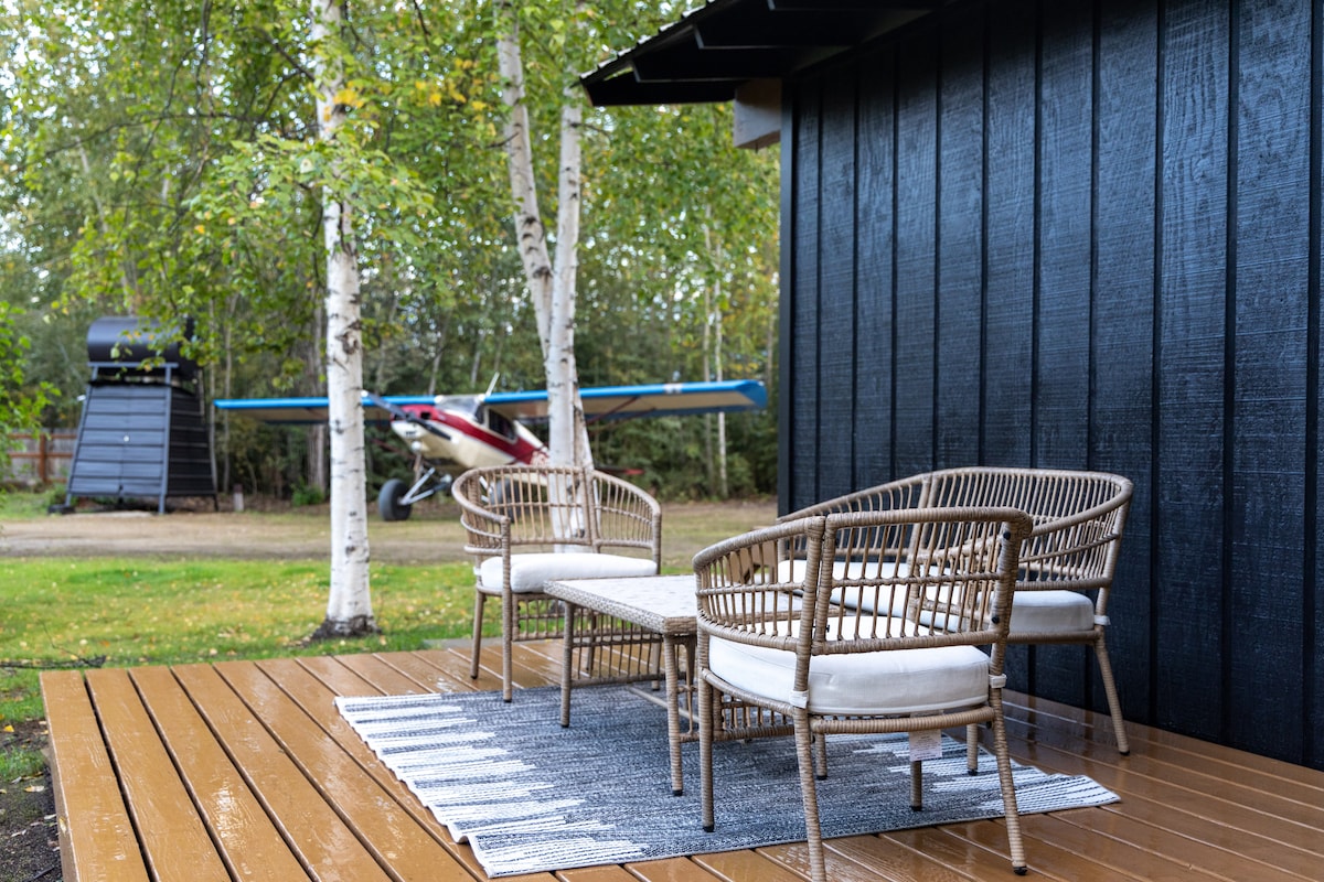 Hangulatos 1 hálószobás 1 fürdőszobás privát otthon, közvetlenül a városon kívül, mindössze néhány mérföldre a repülőtértől. Közel a nagyszerű ösvényekhez a túrázáshoz és a sífutáshoz, de a városon kívül is elég ahhoz, hogy nagyszerű show-t kapjon az északi fénytől. Frissen frissített, csendes környezettel, tökéletes kikapcsolódással. Teljes méretű mosógép/szárítógép, és minden konyhai igény. Gyönyörű alaszkai ingatlan, amelyet az úszó repülőgépek leszállnak, és felszállhatnak az út túloldalán található privát tóról. Nagy ablakok a nagyszerű kilátásért! Háziállat megengedett!