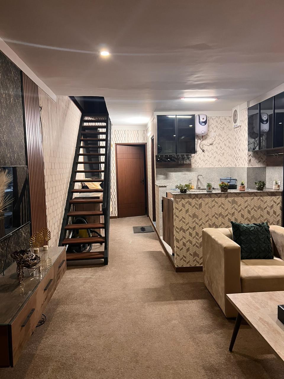 Családi környezet | Bulik vagy nem házas párok nem engedélyezettek | Eredeti személyazonosító okmány szükséges. Lyallpur Galleria Mall – 2 BHK apartman: • 2 hálószoba + nappali • Beltéri alagsori parkoló • Nonstop biztonsági szolgálat • Teljesen felszerelt teakonyha: hűtőszekrény, mikrohullámú sütő, vízforraló, főzőedények • Szállodai stílusú ágynemű; minden távozás után mosott ágynemű és törölköző • Vasaló + vasalódeszka, fürdőköpeny, imaszőnyeg, játékok, okostévé, kényelmes ülőhely • Helyszíni étkezés: McDonald's, Vogue Continental, arab éttermek és számos egyéb lehetőség.