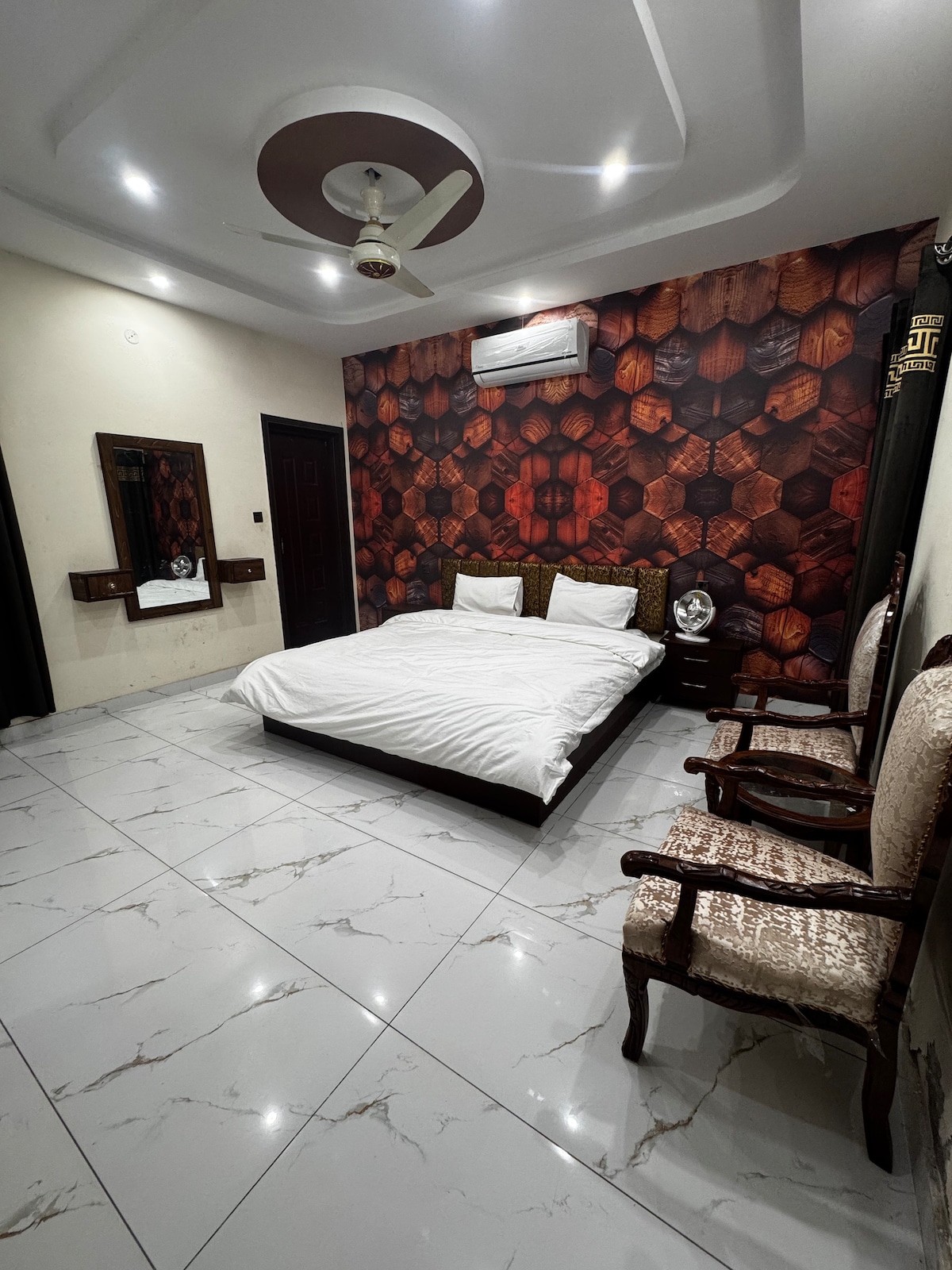 its 5star Lush green area on lower canal road constructed by British architect. Fresh sweet water to shower. and its very close to all attractions like kohinoor , D.ground and Lyalpur Galleria. Gated security 24 hrs. its on Ground floor with all living facilities Air conditioned room hot and cool water 2 Rooms with attachd baths 1 living with cozy sofas Fully operational kitchen wifi Laundry area with automatic washing machine Food delivery facilities nearby