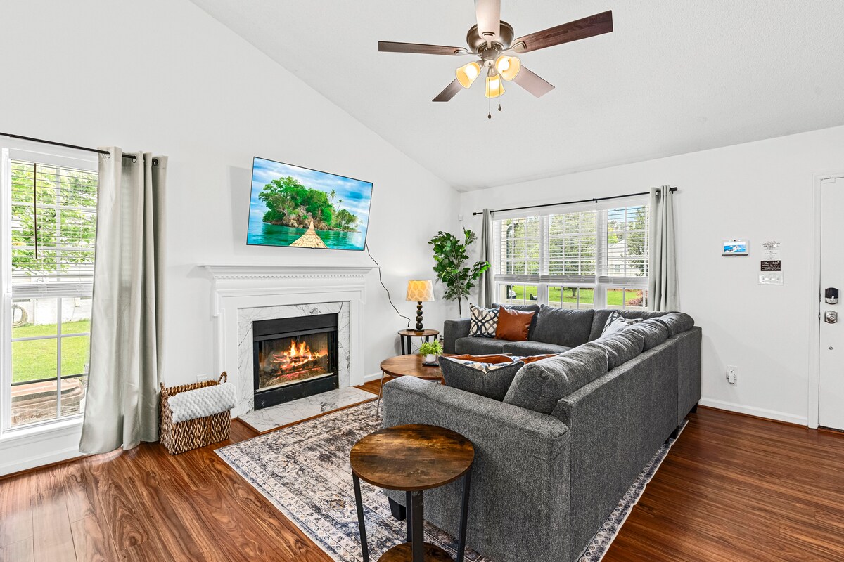 Üdv a The Glam Cottage-ban… egy hangulatos, tehén-tasztikus elvonulás a Wake Forestben! Élvezd a queen méretű ágyakat, a teljesen felszerelt konyhát, az okostévéket, a biliárdasztalt, a társasjátékokat és a buja, hívogató dekorációt. Kint pedig pihenj a saját, elkerített udvaron, ahol pezsgőfürdő, tűzrakóhely és bohó pavilon vár. Percekre a Falls tótól és a gyalogutaktól, ahol lehetőség van a helyi vadvilág megfigyelésére. A vendégek el vannak ragadtatva attól, hogy mennyire otthonos, békés és jól felszerelt, a tökéletes kiruccanás vár rád! 🩷