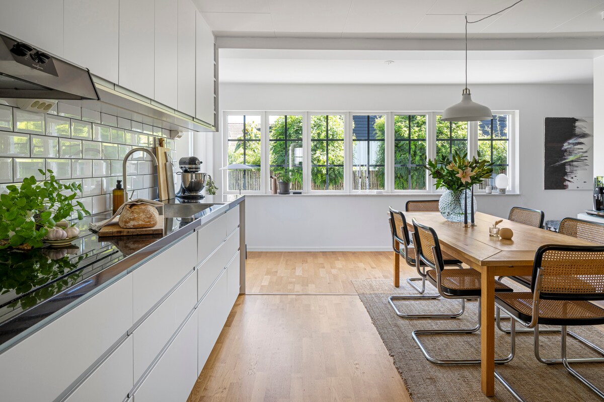 Ez a gyönyörű ház az első sorban található, közvetlenül a vízhez, ahol közös fürdőhíd található. Nagy kert gyümölcsfákkal, bogyós bokrokkal, málnával és gyógynövényekkel. Hangulatos terület a szabadban mind a kert, mind a víz mellett, Van egy nagy kerti szoba kültéri konyhával. A háztól 5 méterre található egy új szabadtéri fitneszterem. A főépülethez való hozzáférés 2 fő foglalható le, ahol további 3 szoba a. 300 DKK. 2 fürdőszoba van