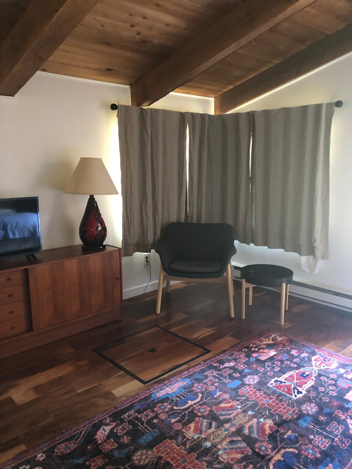 Egy csendes környéken, egy szép, privát, légkondicionált, boltíves mennyezetű víkendház, amelynek üvegfalán keresztül a Baynes Sound és a Vancouver-sziget hegyei láthatók. Önálló, saját bejárattal. Queen méretű ágy loftlakásban, egyszemélyes ágy a földszinten. Privát fürdőszoba zuhanyzóval. Privát hozzáférés a strandhoz. Komp közelében, egy rövid sétára a helyi falutól. Vedd figyelembe, hogy ez az ingatlan nem megfelelő mozgáskorlátozottak vagy kisgyermekek számára. NEM SZÁMÍTUNK FEL TAKARÍTÁSI DÍJAT.