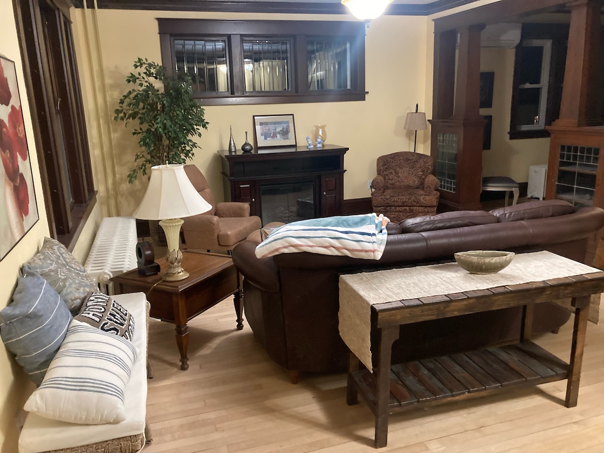 Különleges 2 hálószobás/1 fürdőszobás lakás mindössze 2 háztömbnyire a Broadwaytől, közvetlenül Sanford és a belváros között. A fő hálószobában található franciaággyal, a vendégszobában található teljes ággyal, a kihúzható kanapéval és a futonnal a vendégek számos alvási lehetőséget találnak. Bár 6 személynek is van étkészlete, egy család vagy 3-4 fős csoport kényelmesebben elfér. Minden benne van, amire szükséged lesz egy hétre Fargóban. Elektromos kandalló és egy több mint 3000 játékot tartalmazó játékterem is van, klasszikus és konzolos játékokkal. Remélem, találkozunk!