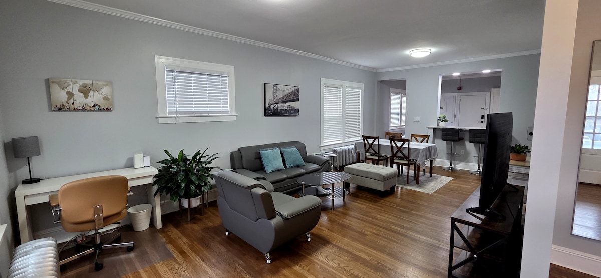 Lépj be a kényelembe ebben a gyönyörűen felújított második emeleti lakásban, amely teljesen felszerelt konyhával, modern teljes fürdőszobával és két szép, pihentető éjszakákra tervezett queen-size hálószobával rendelkezik. Élvezd a reggeli kávét vagy az esti bort a privát erkélyen, amely tökéletes hely a kikapcsolódásra. A szálláshely West Hartford nyüzsgő éttermi életének középpontjában található, mindössze néhány lépésre az olyan ikonikus helyi kedvencektől, mint a legendás Park Lane Pizza.